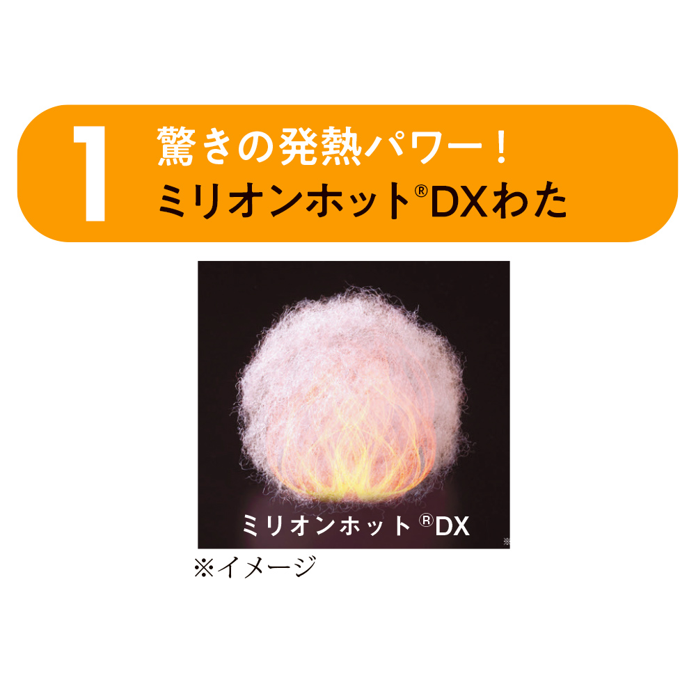 「ミリオンホット(R)DX」は湿気を吸って発熱するので、温かさに加え布団の中がムレにくく快適です。さらに驚きの発熱パワーにより、布団に入った瞬間からポカポカに。