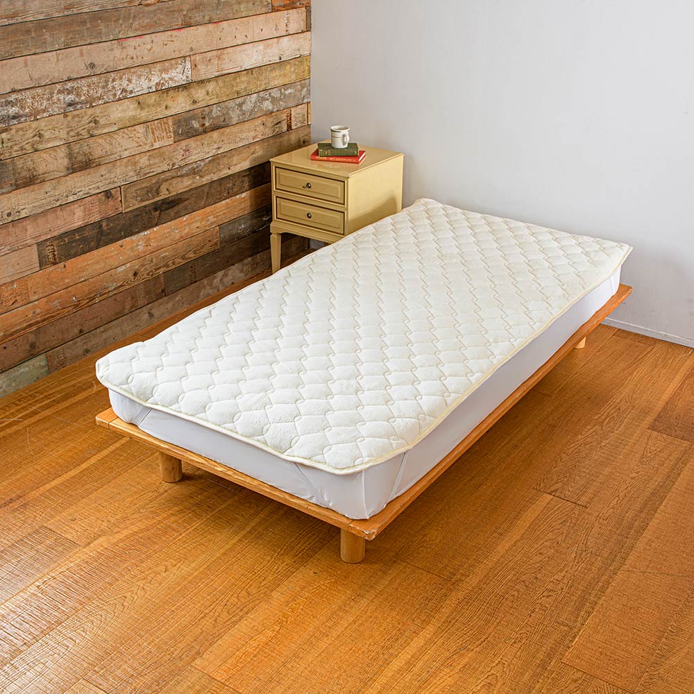 ケット上側と敷きパッド下側に断熱効果のある遮熱アルミ生地を使用し、厳しい冷え込みや床からの冷気をブロック。やわらかなアルミシートを採用することで肌沿いも◎。