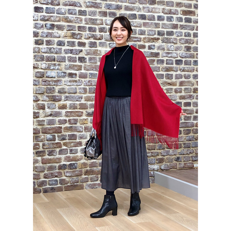 カシミヤ100%!贅沢な本物素材で羽織るだけで一気に華やかに。 (オ)レッド系