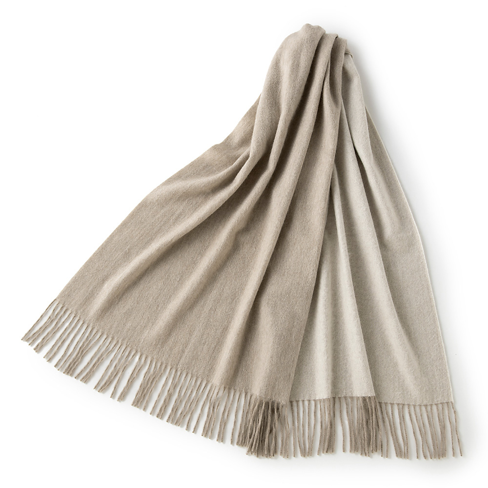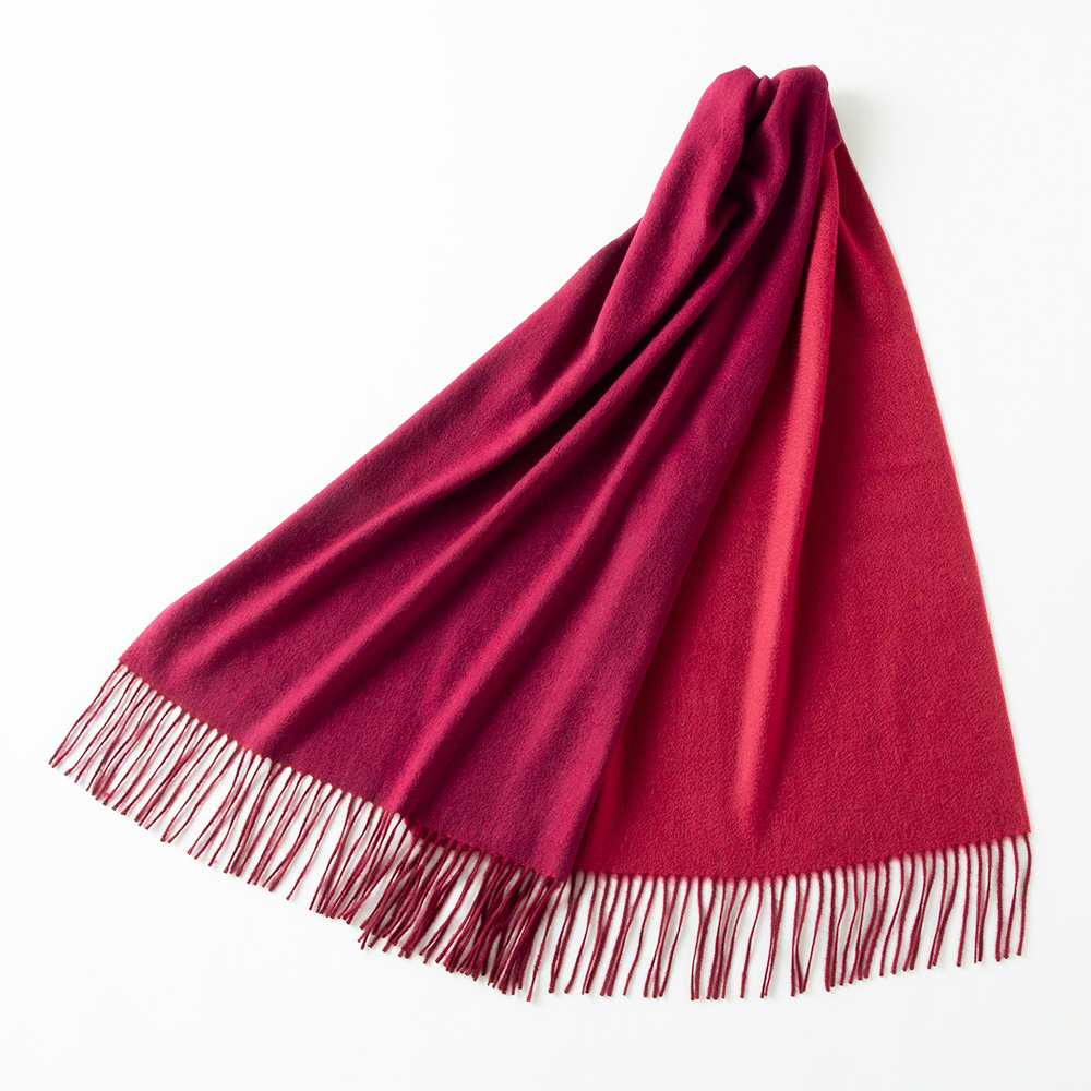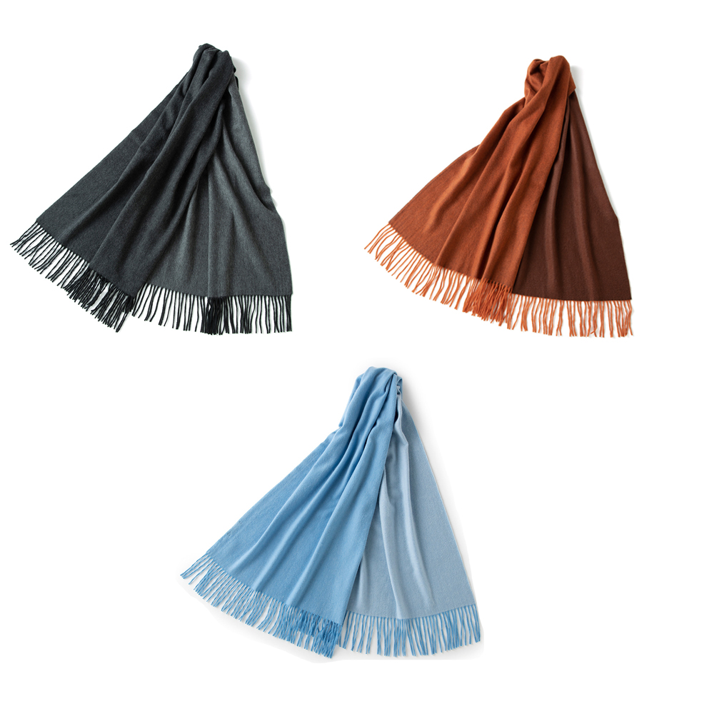 正真正銘カシミヤ100%のリバーシブルストール。軽く、暖かく、肌触りが良く、思わず頬ずりしたくなる気持ち良さ贅沢な本物素材で羽織るだけで一気に華やか!カシミヤ100%の『カシミヤリバーシブルストール』カシミヤといえば、肌触りがよくて暖かな高級繊維。それを正真正銘100%使用したストールは、思わず頬擦りしたくなる気持ちよさ♪表と裏で濃淡の配色をあしらい、美しいリバーシブル仕立てに。大判サイズだから色々な巻き方が楽しめ、アウター代わりにも使えます。サッと羽織るだけでサマになるのは嬉しいですね。【カシミヤとは】★カシミヤは、カシミヤ山羊の毛のこと。肌触りが良いのは、繊維が細く、長く、柔らかいから。しかも軽く、保温性・調湿性に富み、上品で艶やかな風合いから「繊維の宝石」と呼ばれる高級天然素材です。★中でも、カシミヤの上質な柔らかなうぶ毛と綿毛を使用しているので、とにかくすべすべ!コートの上からでも羽織れるゆったり大判サイズサイズは約55×180cm(フリンジ各10cm含む)の大判。コートの上からもゆったり羽織れ、おしゃれな上に防寒対策にもおすすめ。また、このサイズなら巻き方も多彩にアレンジ可能。首回りにボリュームを持たせて巻くと、小顔に見える効果もありますよ。男性にもおススメです。