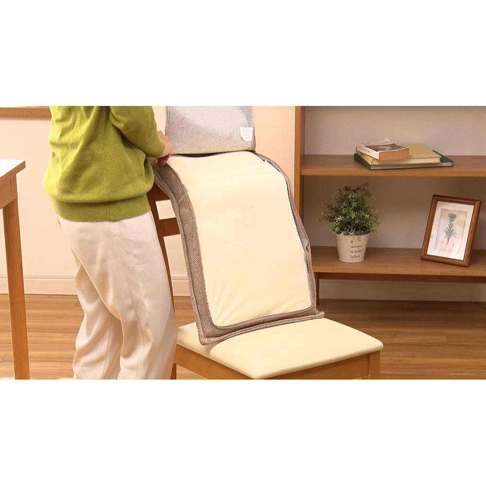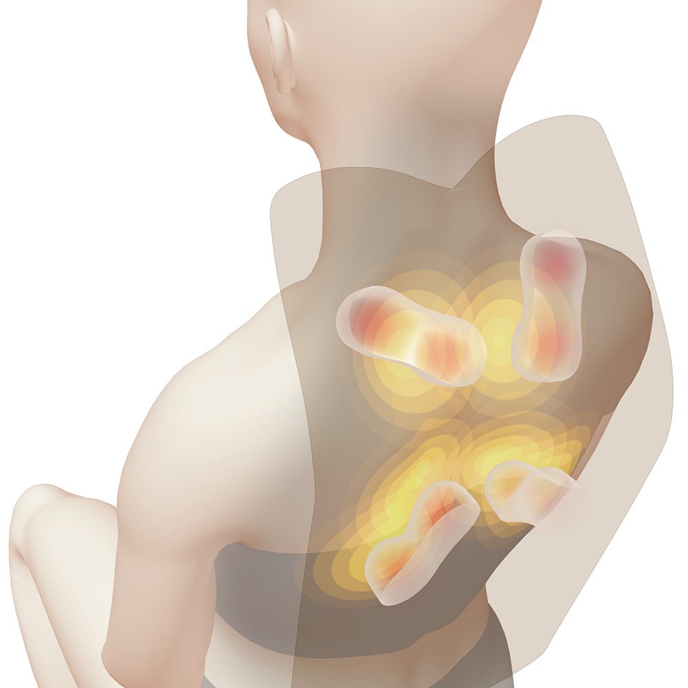 L字型のシートが首肩回りを包み込むように揉みほぐし!【肩甲骨回り〜首肩】