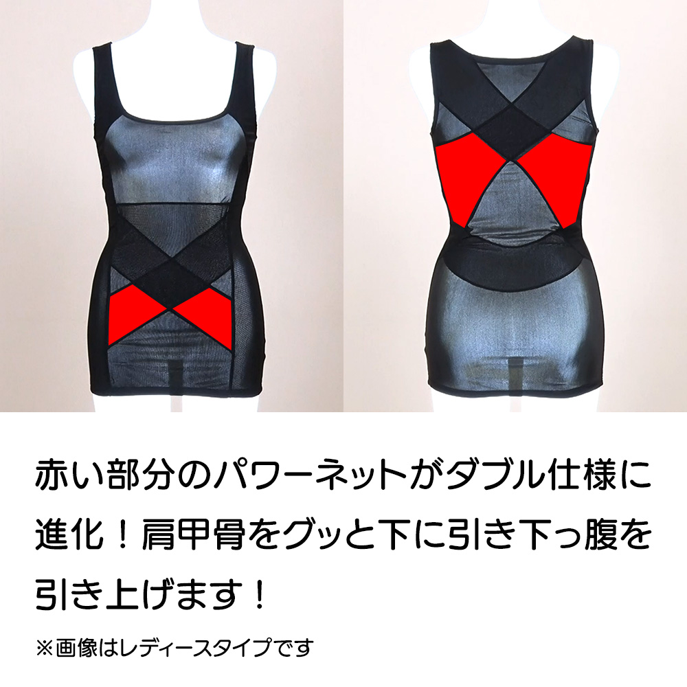「肩甲骨」に着目した、人気補整インナー「姿勢インストラクター」シリーズ。肩甲骨の引き寄せと、お腹まわりの引き締めのダブルの機能をパワーアップ!男性の方用にメンズタイプもご用意。