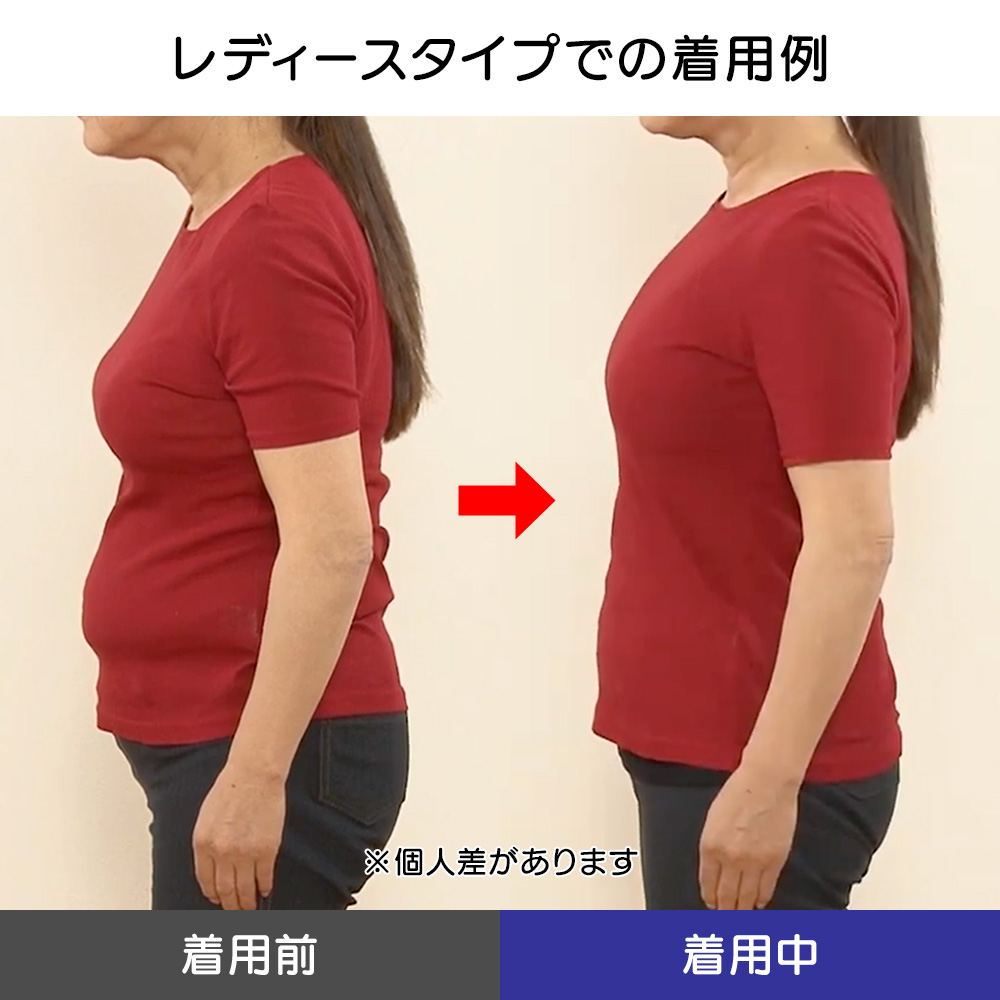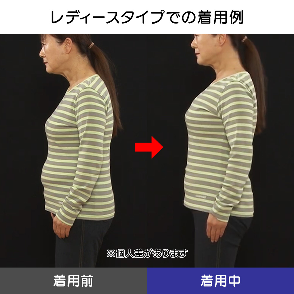 関連商品は下記の商品名をコピーのうえ検索してください。姿勢インストラクター アクティブコアDouble(レディース)【セット】姿勢インストラクター アクティブコアDouble(メンズ)【セット】姿勢インストラクター アクティブコアDouble(レディース)肩甲骨の引き寄せとお腹の引き締め、ダブルの補整!美姿勢をキープして、動きやすい。パワーアップした姿勢インストラクターシリーズ! 背中が丸まった姿勢では、元気がなさそう、老けて見られるなど、印象が悪くなりがち。とはいえ背筋がシュッと伸びた美姿勢をキープするのは難しい…。そこでおすすめなのが、服の下に着ることで美姿勢に見える『姿勢インストラクター アクティブコアDouble』。美姿勢キープに重要とされる「肩甲骨」に着目した人気補整インナーシリーズで、なんと肩甲骨の引き寄せと、お腹の引き締めのダブルの機能がパワーアップ。着た瞬間から、姿勢が整い、ぽっこりお腹や背中のハミ肉もスッキリ補整!Tシャツ1枚でも自信が持てます。パワーアップポイント◎肩甲骨とお腹のパワーネットの一部を2枚重ねにしたダブル仕様に強化。◎肩まわりのアームホールを広げ、肩を動かしやすいつくりに。【開発者・青木美樹さんによる美姿勢の秘訣とは】75歳(※取材時)の今も現役のフィットネスインストラクターとして活躍する青木美樹さん。その美姿勢の秘訣とは…「姿勢をよくするには、肩甲骨が一番大事。肩甲骨を寄せることで自然と姿勢をよく見せることができます。姿勢がいいと若々しく見えますし、やっぱり元気の秘訣ですね。60代の頃より姿勢の維持は大変になりましたが、このインナーで助けられています」。着れば、美姿勢をキープ!美姿勢キープの秘訣は「肩甲骨」といわれても、四六時中「肩甲骨」を意識するのは困難です。でも『姿勢インストラクター アクティブコアDouble』なら着ればOK!意識しなくても美姿勢に見せてくれます。その秘密が、背中に配したクロス状のパワーネット。着るとパワーネットの力により肩甲骨が引き寄せられ、自然に胸が開き、丸まっていた背中がシャキッと伸びて美姿勢に。〈パワーアップポイント〉・背中にクロス状に配置したパワーネットの一部をダブル(2枚重ね)仕様にリニューアル。よりラクに肩甲骨が引き寄せられるようになり、美姿勢キープがしやすくなりました。ダブルの部分が背中のハミ肉をしっかり押さえて、段差が出にくいスッキリとした背中に整えます。ポッコリお腹も、なんとかしてくれる!姿勢がよくなると、それだけでお腹も伸びてすっきりしますが、さらに骨盤を立たせるためにお腹まわり360度にもパワーネットを配置しました。美姿勢のキープ力も高まり、ポッコリお腹がスッキリ見えます。〈パワーアップポイント〉・下腹をへこませるパワーネットの一部をダブル(2枚重ね)の仕様。従来モデルより下腹がしっかり押さえられ、ポッコリお腹の引き締めもパワーアップ。美姿勢&補整力を強化しながら動きやすい!補整下着というと、ガチガチに固めるものが多いのですが、これは「肩甲骨」と「骨盤まわり」以外はストレッチ性の高い生地を使用するなど、緩めの設計に。〈パワーアップポイント〉・肩まわりのアームホールを大きく広げたつくりに。肩がよりラクに、動かしやすくなりました。・丈を長めにすることで、めくり上がりにくくなったのもうれしいポイントです。着ているほうがラクだから続けやすい!ダブルの補整力の強化」と「動きやすさ」という相反する機能を追求。そのために、パワーネットの強度や縫製等にこだわり何度も試作を重ねました。美姿勢をキープして、お腹・背中のハミ肉をスッキリ!しかも「着ているほうがラク!」ということを改めて実感できます。◎メンズ用もご用意しました。カラーはブラックとベージュ。サイズはS〜3Lです。