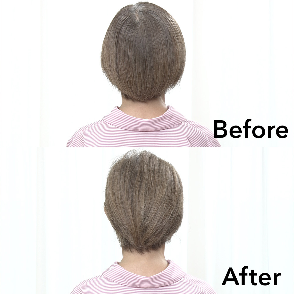 トップや後頭部にボリュームが出ると若々しい印象に。小顔効果も期待できます。