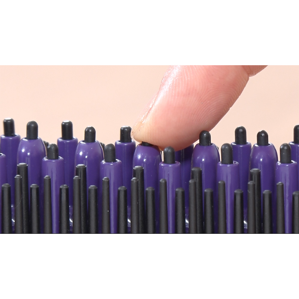 互い違いに配置されたピンが髪をしっかりキャッチ!ツヤとまとまりのある髪に仕上げます。