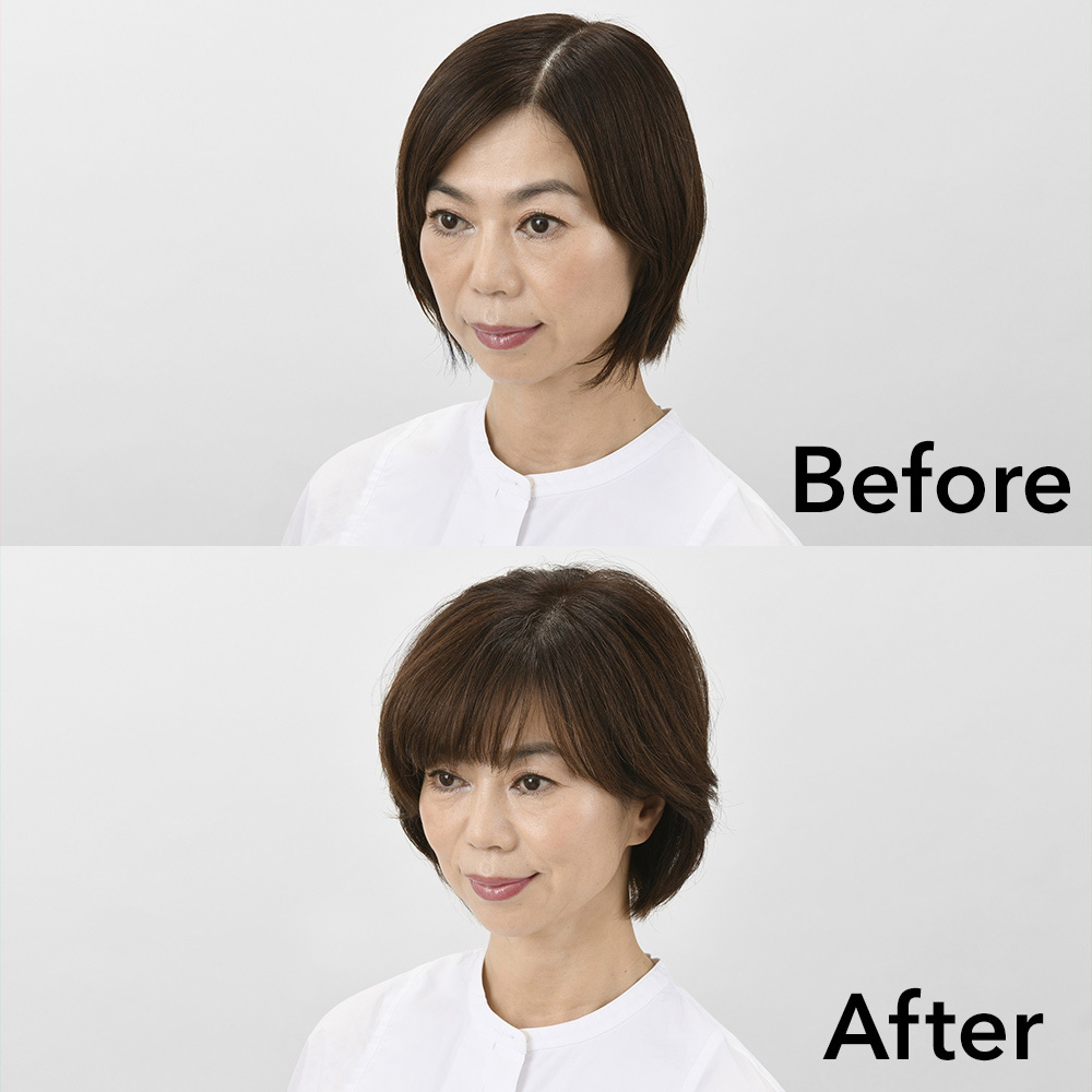 頭頂部の分け目や白髪もトップのボリュームを出すことで目立ちにくくなります。