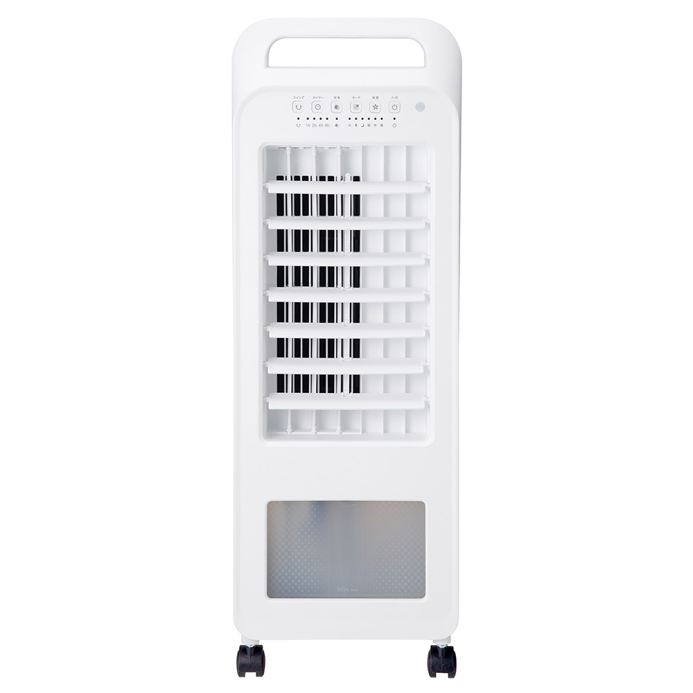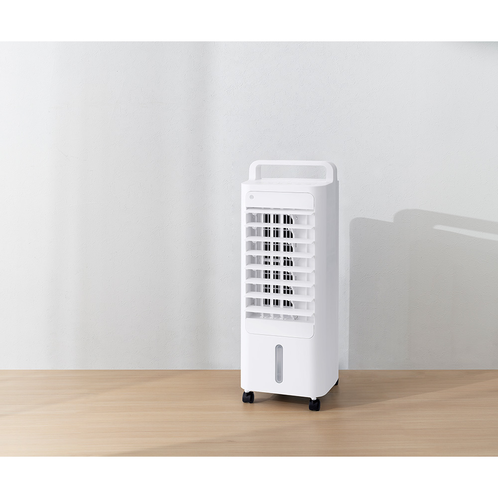 エアコンは冷えすぎる、でも扇風機では物足りない人にオススメ!水を使って潤いのある涼しい風を送ってくれるコンパクト冷風扇、電気代も経済的なので、夏のイチオシアイテムです!エアコンは冷えすぎる、でも扇風機の風では物足りない方に「コンパクト冷風扇 エアクールファン」がオススメ!水の力を利用して潤いのある涼しい風をお届け!ひんやり涼しい風で今年の夏を乗り切りましょう!水を使って涼風に!タンクに入れた水を吸水ポンプでくみ上げてフィルターに浸透。湿ったフィルターに送風することで、気化熱を利用してひんやりとした涼しい風を送ります。乾燥したり、冷えすぎることがなく、心地の良い風です。保冷剤付きでさらに冷たい風に!保冷剤がセットに!冷凍庫で冷やした保冷剤をタンクに入れればより冷たい風に!さらに、氷も入れることができるので、併用すれば長時間冷たい風をキープできます。お手入れもラクラク!タンクは取り外し可能なので、給水やお手入れ時にラクなのが嬉しい!電気代もとっても経済的1時間あたり約1.22円なので一日8時間使ってもたったの10円※!電気代を気にすることなくお使いいただけます。※1kWh=27円(税込)で計算便利な機能も充実!・風の強さは3段階(弱・中・強)調節可能。・自然風モードを搭載。風量の強・中・弱・停止が自動で切り替わり、自然のそよ風をイメージした心地よい風で送風します。・左右自動ルーバー(約80°)搭載。広範囲に風が送れるのでリビングみたいな広い部屋でも大活躍!・上下ルーバー付き。低い場所にも風が送れるから、座っている時などに便利。・キャスター付きなので移動もラクラク。リビングはもちろん脱衣所やキッチンなど、エアコンの風が届きにくい場所にも運べます。・リモコン付きで離れたところから操作OK。使わないときは背面に収納できます。・部屋干しの洗濯物の乾燥時などにもご使用いただけます。・オフタイマー(1、2、4、8時間)機能が便利。寝苦しい夜でもお使いいただけます。