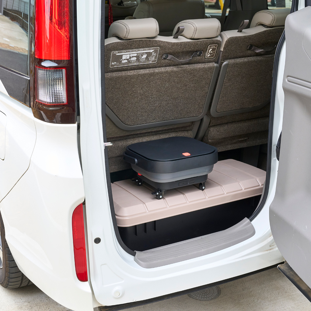 ご自宅でいつでも洗車可能なのは嬉しいポイント。キャスター付きだから移動も軽やか。