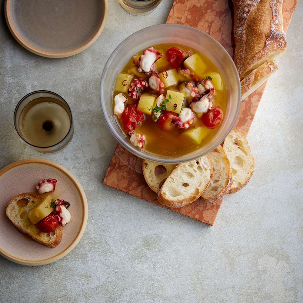 アヒージョ:オイル調理もお任せ。ガラスだから油が落ちやすく洗いものがラクなのも嬉しいポイント。