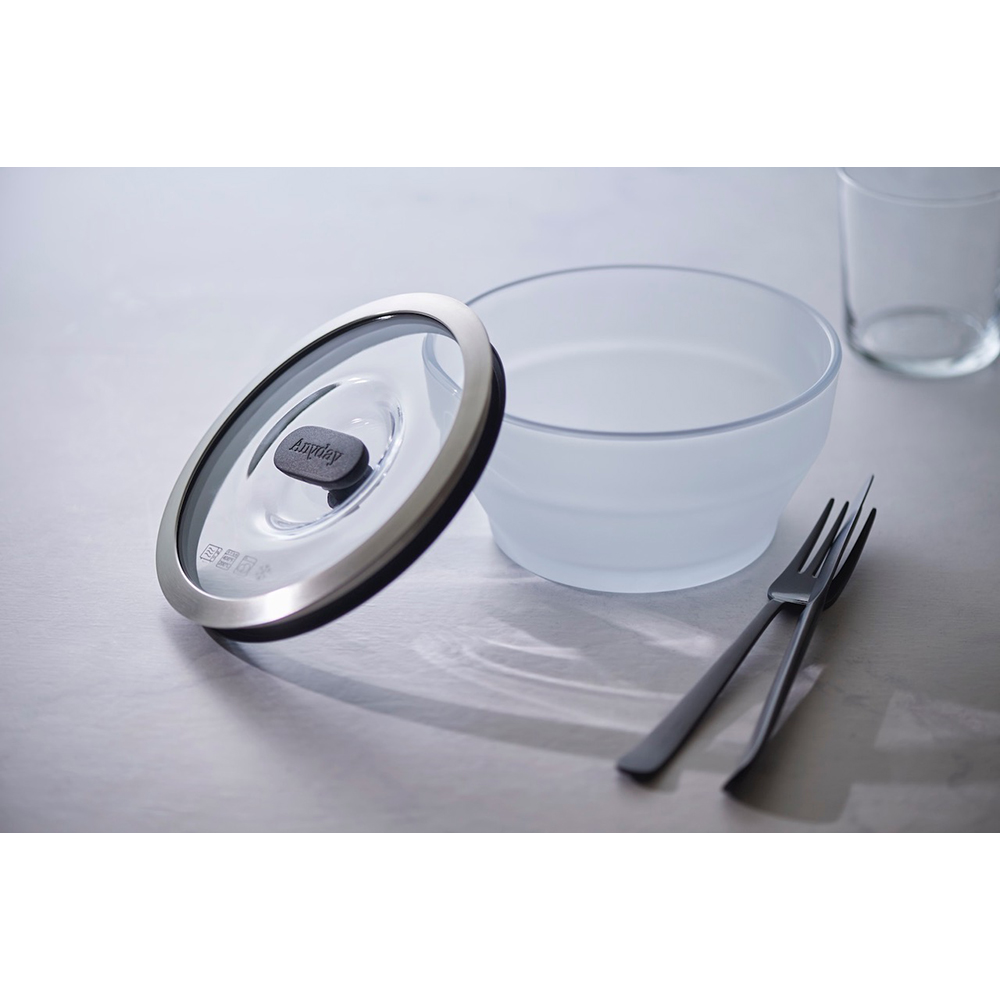 電子レンジ調理なのに驚く美味しさ!肉やお魚が短時間でしっとりジューシーに。電子レンジ調理なのに驚く美味しさ!新感覚レンジ調理器なんとかラクしたい毎日の料理。そんなときに電子レンジ調理って便利ですよね。ただ電子レンジ調理だとパサつきや加熱ムラなど何だかんだ美味しく仕上がらないことも。そんなお悩みを解決してくれる新感覚電子レンジ調理器!電子レンジ調理なのに驚く美味しさ、肉や魚がふっくらジューシーに!MEYER Anydayって?食材を入れ、チン!となったら食卓へ。さらにそのまま保存もできる電子レンジ調理器具。(1)材料を入れる(2)バルブを引き上げる(3)レンジへ(4)そのまま食卓へ(5)バルブを下げて保存Anydayのココがスゴイフタの密閉度が高く、持ち手部分は上下稼働式。加熱中はほどよく蒸気を逃がし、余熱や保存する際は密閉。厚さ約5mmもの耐熱ガラスが熱をしっかり閉じ込める!美味しく仕上がる秘密・フタの密閉度と耐熱ガラスの厚みで効率よく熱循環できる仕組みに。短時間の加熱でも十分なのでしっとりジューシーな仕上がりに! ・さらにフタのバルブを下げれば、溜まった熱い蒸気で圧力をかけ、分厚いお肉にもしっかり火が入ります。余熱の過程で味を染み込ませることができるのでまさに一石二鳥!Anydayの便利ポイント 上品なフロスト加工を加え、高級感のある仕上がりにしているため、器としてそのまま食卓へ。さらに内側はつるりとしているので汚れも落ちやすくお手入れも楽々! バルブはスタッキングしやすいように埋め込まれていますので、重ねて収納が可能です。 平らな省スペースデザインは、冷蔵庫にもスッキリと収まります。 電子レンジ使用可、オーブン使用可(ディッシュ260℃、フタ200℃)、冷凍可(※液体の冷凍はしないでください)、食器洗浄機使用可!(※14cm蓋は強化ガラスのため不可) ディノス限定レシピ付き!16cm+14cm+通常レシピ25品&ディノス限定レシピ20品付き!