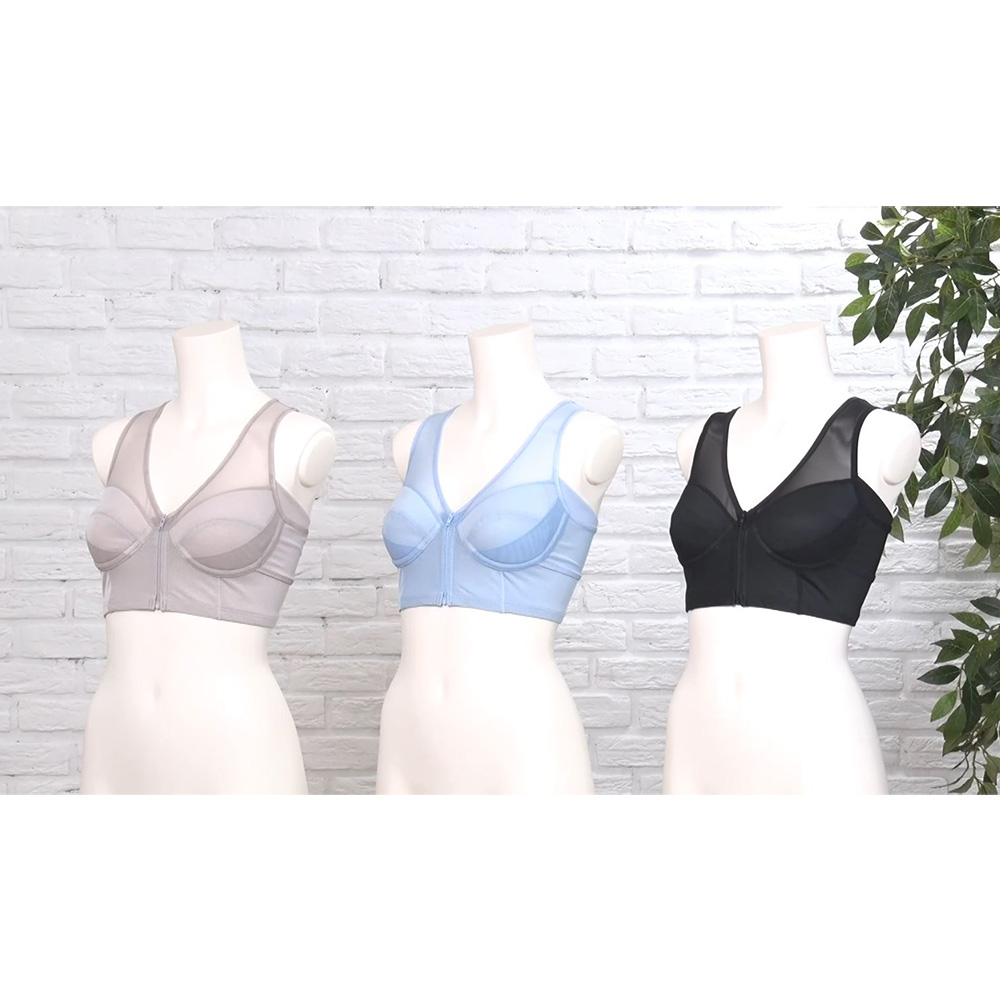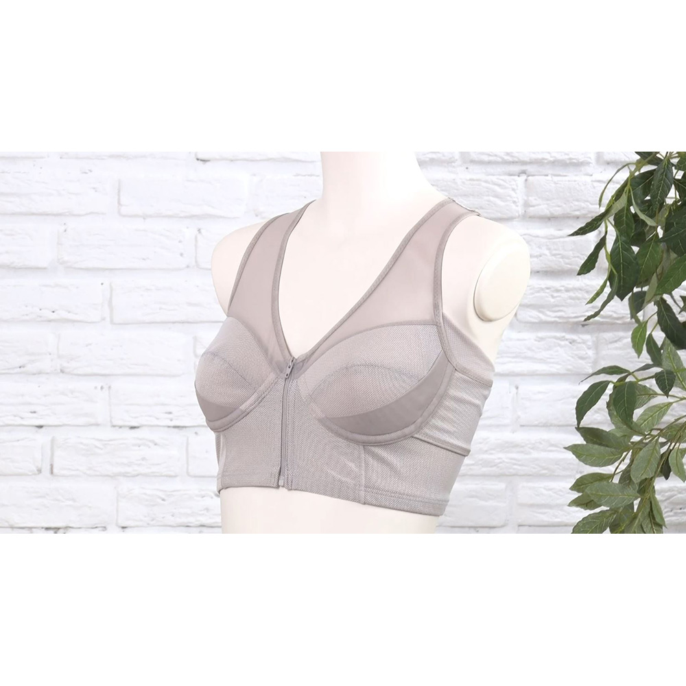 バレリーナの姿勢をヒントに開発!肩甲骨と肋骨をサポートするからブラジャーだけで美姿勢に!美姿勢&スタイルアップが目指せるブラが番組初登場!補整下着は着痩せ効果が高いけれど、お腹が締め付けられて苦しいことも。そこでおすすめなのが、番組初登場の『肋骨サポート 美スラリブラ』。ハーフトップタイプのブラなのでお腹まわりがとにかくラク。それなのに着ることでバレリーナのような美姿勢に整え、スタイルアップが目指せます。しかもフロントジッパーで着脱も簡単!『肋骨サポート 美スラリブラ』のうれしいポイント〈1〉着るだけで速攻美姿勢に!〈2〉補整力があるのにラク!〈3〉姿勢が整うことで、首・肩への負担を軽減。バレリーナの美姿勢は「肩甲骨」と「肋骨」が重要バレリーナといえば思い浮かぶのが美しい立ち姿。バレエの基本姿勢は「肩甲骨を寄せて胸を開く」「肋骨を内側に締める」「上から吊られたように引き上げる」の3つ。ただ、自分でやろうとしても反り腰のようになってしまいがち。でも大丈夫!『肋骨サポート 美スラリブラ』を着れば、速攻でバレリーナのような美姿勢に整えてくれます。着ることでバレリーナのような美姿勢に導く!ブラなのに着るだけで速攻美姿勢に整える理由は、「肩甲骨」と「肋骨」の両方にアプローチすることで、引き上がったような姿勢になり、体幹まで意識できるから。姿勢が美しく整うと、お腹がヘコみ、バスト位置もアップ。首がスッと伸びて、視覚効果で顔まで小さくなったように見えます。◎肩甲骨…背中の肩甲骨部分は、パワーネットをたすき掛け構造にすることで、肩甲骨を引き寄せ、胸が開きやすい状態に。まるで手で背中を押してくれているような感覚です。◎肋骨…バスト下は長めの構造で、肋骨部分を押さえるようにパワーネットを配置。肋骨を内側に締めることで美姿勢をキープします。補整力があるのに、着心地ラク!美姿勢に整えるだけでなく、ブラとしての補整機能もしっかり。それでいて着心地ラクなのは、インナーの老舗メーカーがこだわり抜いてつくっているから。日常からお出かけまで毎日活躍します。【着心地ラクな秘密】・ブラだけで姿勢が整うから補整下着のようにお腹を締めつける必要がなく、着心地がラク。・バストの金属製ワイヤーや硬い生地は一切使っていません。パワーネットも薄手で締めつけ感が少なく、苦しくなりにくい。・フロントジッパーなので、後ろに手を回す必要がなく脱ぎ着がラク。しかもジッパー部分には当て布をつけて、肌にジッパーが当たらない仕様に。・肩ひもは幅広でくい込みにくい。・カップは綿混素材で、肌あたりがやさしい。【補整力】・両脇にパワーネットを配置することで、流れがちなバストを中央に寄せる。・金属製のワイヤーを使わずバスト下にはやわらかくフィットする樹脂製の幅広ワイヤーを使用。ノンワイヤーのようなラクな着け心地はそのままに、下からしっかり持ち上げます。・幅広肩ひもも柔らかなパワーネットで、上からバストを持ち上げます。姿勢が整うことで、首・肩に負担がかかりにくい!実際に着用してみると、内側に丸まった肩が開いて下がり、前のめりだった頭も自然と後ろに引きやすくなります。内側に丸まった肩が開いて下がり、前のめりだった頭も自然と後ろに引きやすくなります。美姿勢に整えることで首や肩への負担が少なくなります。◎脇に汗パッドと胸元に当て布付きで汗対策できるのもうれしい配慮。◎サイズはM〜3Lまでご用意。◎カラーはブラック、グレージュ、アイスブルーの3色からお選びいただけます。