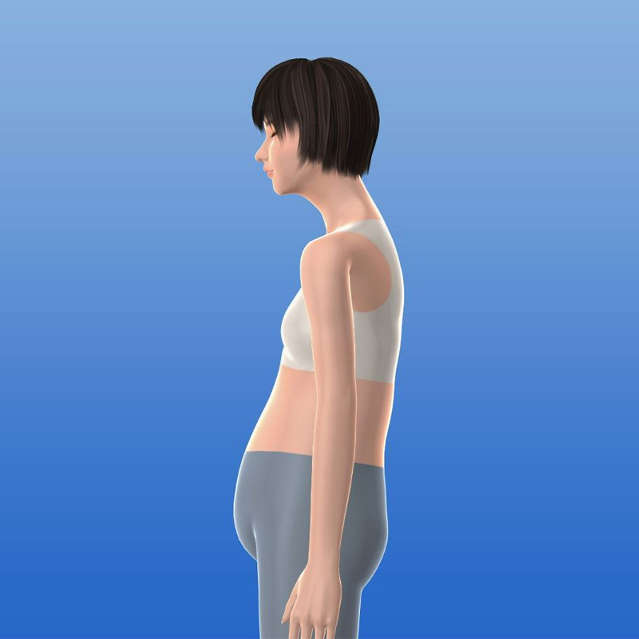 姿勢が崩れると背中が丸まってポッコリお腹に・・・
