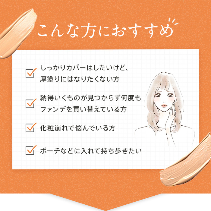 リキッドの他にもパウダーやクッションファンデなど、どのファンデーションでも使用可能。