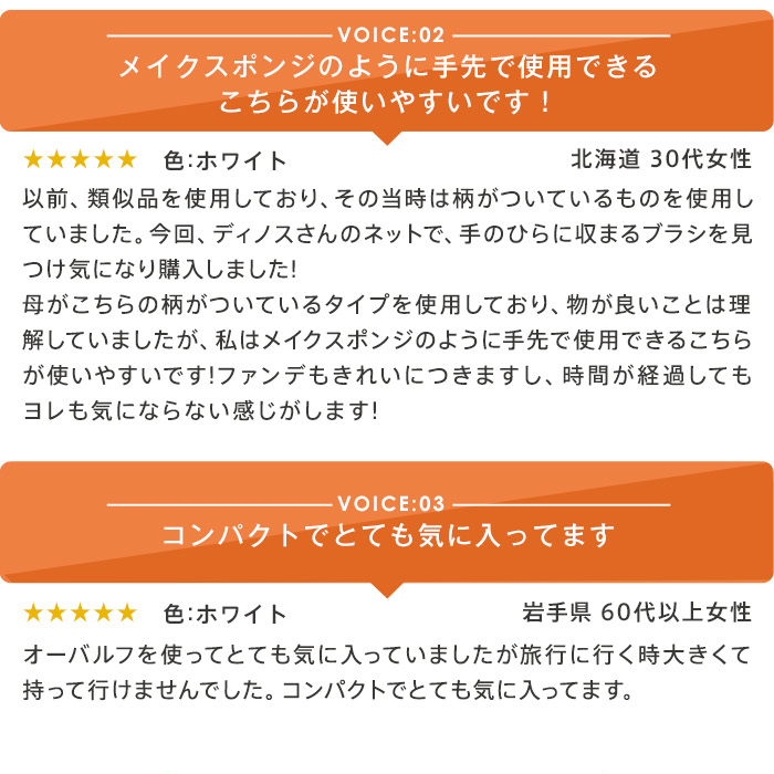 特にこちらは手でコントロールしやすいので、ブラシ初心者の方にもオススメです。握った際に指をあてる部分にくぼみがあり、手にフィット。持ち手がないのでコンパクトで持ち運びも便利!