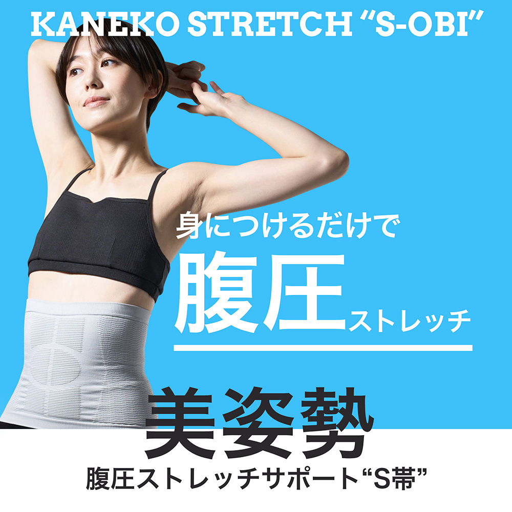 本店は複数購入での割引特典はございません着るだけで【美姿勢】【腹圧ストレッチ】日常生活で腹圧ストレッチを体感、下腹ぽっこり対策にも!Kaneko stretchのメソッドを採用シリーズ累計販売35万枚※1突破の腹圧ストレッチサポーター“S帯”がアップデートして新登場!【開発・監修】兼子ただしストレッチトレーナー・理学療法士早稲田大学大学院スポーツ科学修士号※1 メーカー出荷枚数において(集計期間2016年6月〜2024年11月)その悩み「腹圧」がうまく使えていないことが原因かも開発者の兼子先生曰く、・姿勢が悪い・下腹ぽっこり・首や肩、腰に負担を感じる現代人の多くが悩む、姿勢の歪みからくる様々な不調は、「腹圧」がうまく使えていないことが原因のひとつ。※腹圧:腹部にかかる圧力のことお腹は、骨で覆われておらず不安定骨格が姿勢を保つうえでの基本構造ですが骨盤と胸郭の間は空白スペースがあります。その空白スペースには体幹筋群があり、これらが収縮して「腹圧」を高めることで、コルセットのように体幹下半分を引き締める役割をします。身につけるだけで美姿勢筋力低下などで体幹筋機能が低下していると「腹圧」が上がりません。そうなるとバランスをとるために代償的に腰背部が丸くなり、不良姿勢となってしまいます。S帯eXは身につけるだけで、腹圧が高まり、体の中心部を安定させ、良い姿勢をサポート。腹圧がしっかりかかるとポッコリお腹もすっきり!腹圧が高まり美姿勢になることでポッコリお腹もすっきりします!腹圧ストレッチをしっかりサポート着用のポイント1.下から履く2.しっかりとお腹を凹ませ腹圧をかける3.その状態をキープしたままS帯eXをウエストにフィットずっと意識していなくても腹圧のかかった状態をS帯eXがしっかりサポートしてくれるんです!独自製法の「腹筋形状圧」S帯eXは腹部と背中を着圧サポートしつつ腹筋の動きに合わせて同時にストレッチ!筋肉の形状をイメージした着圧設計によって、腹圧をキープしながらも腹筋の動きを妨げないように考えられたデザイン。日常生活を腹圧ストレッチに締め付けて固定するだけのコルセットや骨盤ベルトとは違う新感覚腹圧ストレッチウェア。毎日着続けることで貴方の理想の身体を目指す消費カロリー約130%アップ!・運動で増加した呼気代謝量比較(未着用・本品着用での10分間歩行時)・男女6名(40〜50代)の平均 ※メーカー調べ(青葉台たけだ整形外科 理学療法士 松下和哉)※結果を保証するものではありません男女問わずご使用いただけます!カラーも日常生活に馴染むアッシュグレー。※ブラックは4Lサイズのお取り扱いがございません。