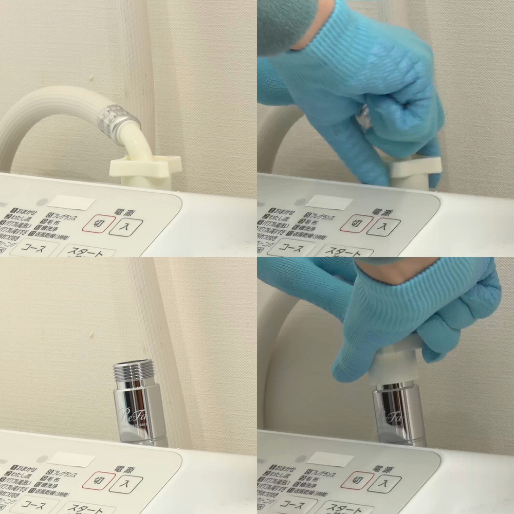そんなときにこの「リファウルトラファインバブル ランドリー」。洗濯機にクルクル回してつけるだけの簡単取り付け。工具も知識も不要!※取り付け時は滑り止め付きの手袋をお使いください