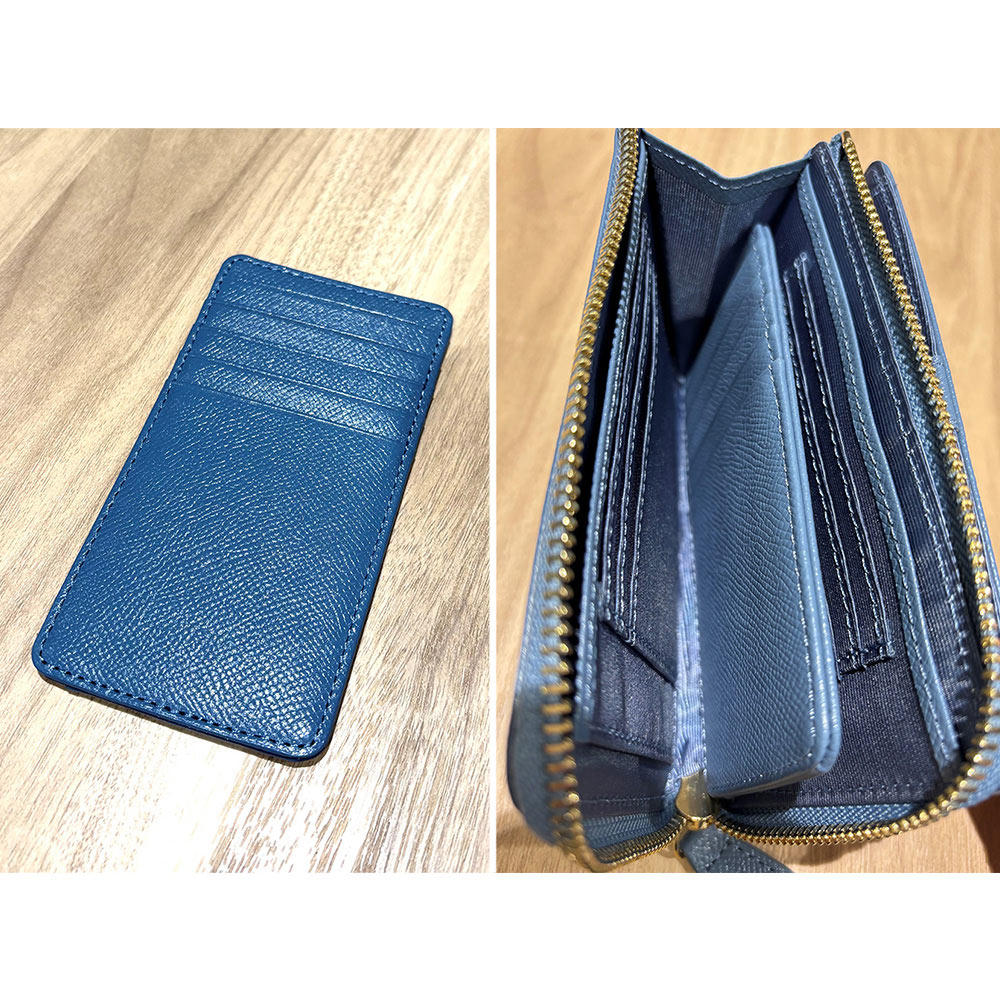 長財布とコンパクト財布のいいとこ取り!ミドルサイズでも大容量のお財布!【牛革ミドルウォレット】長財布とコンパクト財布のいいとこ取り!ミドルサイズでも大容量のお財布!長財布とコンパクト財布の中間サイズで、手に収まりの良いスマホ感覚のサイズ感。小さいながら長財布に引けを取らない収納力!カード・お札・小銭をたっぷり収納できて、しかもかさばりにくい、新しい発想と工夫が施されたアイテムです。長財布は「たくさん入るけどかさばる、トレンドのミニバッグに入らない」コンパクト財布は「カード類が入りきらない、厚みがパンパンになる」など、双方の意見を反映させたお財布!!【有名ブランドも手がける老舗メーカーが製作!】この財布を製作したのは、老舗メーカー「AJIOKA」。数々の有名ブランドバッグや財布を手がける信頼のメーカーです。いかに大きさ・厚みを出さずに、十分な収納力と使い勝手のよさを実現すべく何度も試作を重ね、仕上げた渾身のアイテムです。【こだわりポイント】★《サイズ感》長財布とコンパクト財布の中間、ミドルサイズを目指し試行錯誤、何度も修正を重ね、手にしっくりと収まりの良い、スマホ感覚のサイズ感が実現しました。小さいバッグはもちろん、ポケットにも入ります!★《機能》◎カード収納・・・財布本体にはカードが11枚、フリーポケットが5カ所あり、カードやレシートなど充実の収納力。しかも付属の取り外し可能カードホルダーにさらに5枚カードを収納可能です。そして、表のポケット内部にはICカードを収納できる専用のポケットも設置。計17のカードポケットとポイントカードがまとめて入るスペースを備えています。◎お札・・・お札を折らずにスッと入れられる深めのポケット。大きめの領収書など、紙類も収納できます。◎小銭・・・背面に小銭入れを配置し、本体を開閉しなくても素早くアクセスできる動線に。ファスナー開閉で片マチ付きなので出し入れしやすい作りに。◎機種によってはL字ファスナー内部にスマホが収納可能。※※収納可能サイズ最大:縦14.9横7.1厚0.8cmまで対応サイズ添付※ページ下部参照★《素材》上質な牛革にパルメラート調型押し加工を施しました。細かい凹凸のシボ加工によって、発色・光沢感が美しく、キズが付きにくいのもうれしいポイントです。