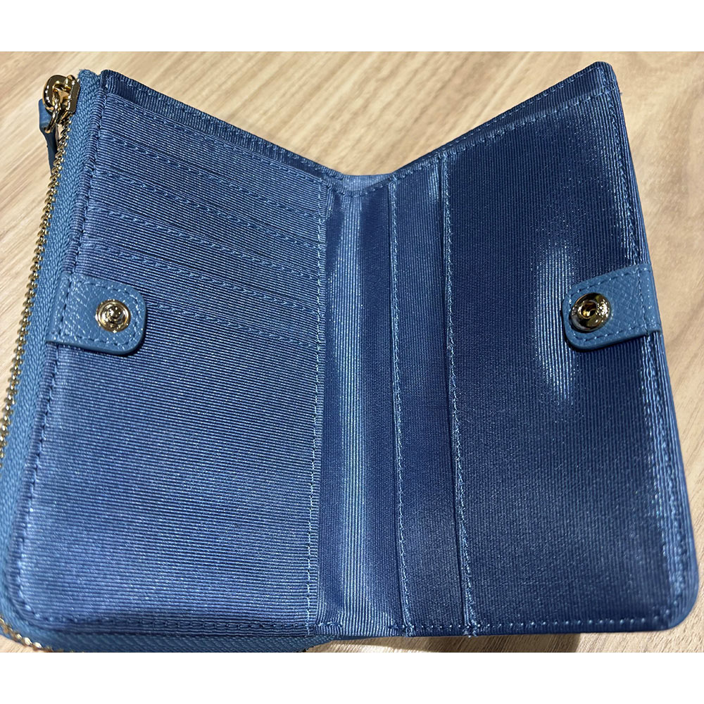背面に小銭入れを配置し、本体を開閉しなくても素早くアクセスできる動線に。ファスナー開閉で片マチ付きなので出し入れしやすい作りに。