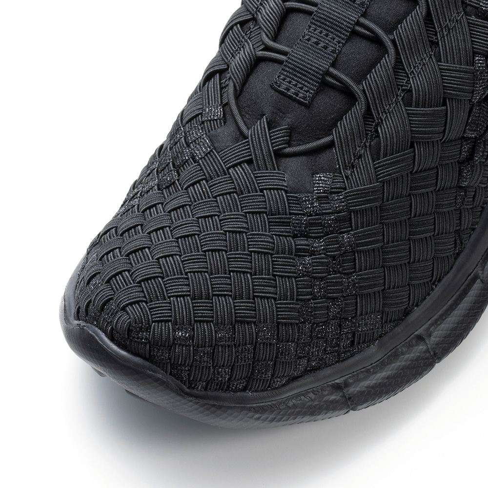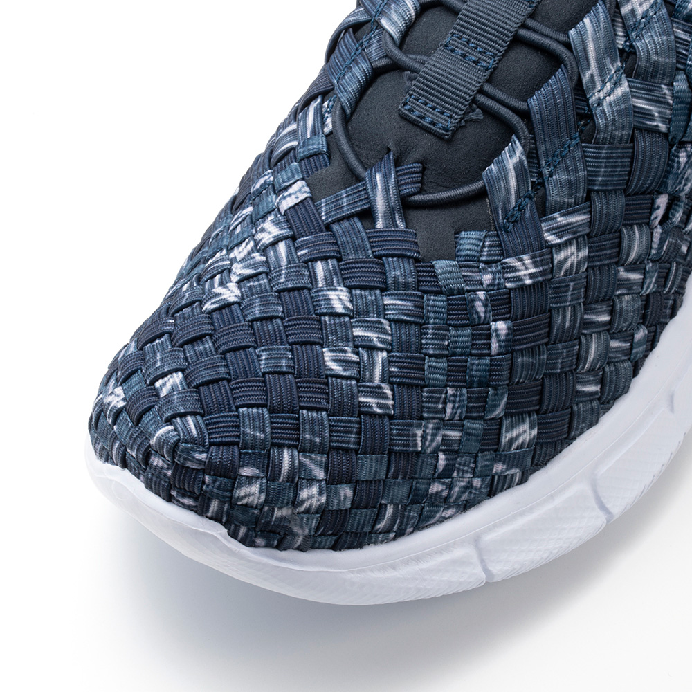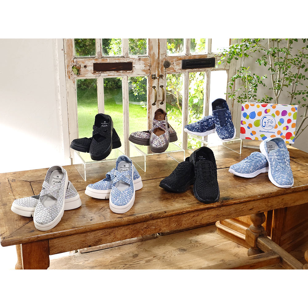 甲高・幅広の方におススメ!とにかく履き心地がよく、疲れにくい。大人気シューズのメンズタイプ!『ゴムゴムクロスシューズ』はどこがスゴイの?◎とにかく履き心地がいい!◎長く履いても疲れにくい!◎オシャレ!【ゴムゴム(Gomu56)とは…】伸縮性のあるゴムとポリエステル素材をメッシュ状に編み込むことで、「足に吸いつくような履き心地」を追求するシューズブランド。日本人の足にあった足型を独自開発し、機械編みでは出せないやさしいフィット感にこだわり、1つ1つ手編みして作られています。そのため1人の職人が1日に作れるのはわずか6足ほど。とにかく履き心地がいい!甲高・幅広の方にもおすすめ履いた瞬間「スゴイ!」と感じるのがフィット感のよさ!まるで靴下のように、靴が自分の足に合わせてくれるから、足馴染みがいい。まさにオーダーメイド感覚の履き心地。甲高・幅広・外反母趾の方にもおすすめです。◎靴の中で足指が自由に動くのは、ゴムで編んだ生地が足の動きや形に合わせて伸び縮みするから。足の凹凸まで包み込むようにフィットします。〈通気性〉メッシュ素材なので通気性がよく、蒸れにくい。〈洗える〉丸洗いできるから汚れやニオイが気になりにくい。※洗濯機、乾燥機は使用しないでください。〈靴ベラパーツ〉踵部分に靴ベラ状のパーツをつけたのもポイント。ここをグッと引っ張ると足入れがラクで、サッと履けます。〈サンダル履きもできる〉踵部分を倒してサンダル履きできるのも便利。しかも柔らかな素材だから 踵を踏んでも変なクセが付きにくい。軽く、歩きやすく、疲れにくい!歩きやすさの秘密は、靴底の屈曲性がよく、足の動きに合わせて靴がついてきてくれるから。靴底が程よい厚みで底付き感がないのも疲れにくい理由です。〈軽い〉重さは片足わずか約200g(27cmの場合)。これは軽い!〈パンケーキクッション〉独自開発の低反発インソール「パンケーキクッション」を採用したのも疲れにくさの一つ。フカフカ感が気持ちいいだけでなく着地の衝撃を和らげてくれます。見た目がオシャレ!履き心地が楽なのに見た目もオシャレ!アッパーの 紐があしらわれたデザインがポイント、さまざまなファッションに合わせやすいデザインです。◎カラーはブラック、ネイビー、ブルーミックス。◎サイズは 25〜28cm(適応サイズ 24.5〜28cm)まで幅広くご用意。