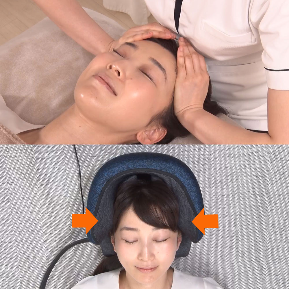 側頭部・頭頂部・後頭部の3か所から、エアーバッグが絶妙な圧で刺激!