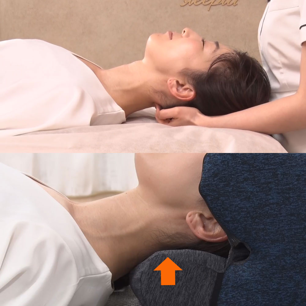 後頭部…首全体を伸ばしながら、中央の突起で深く押し込む!