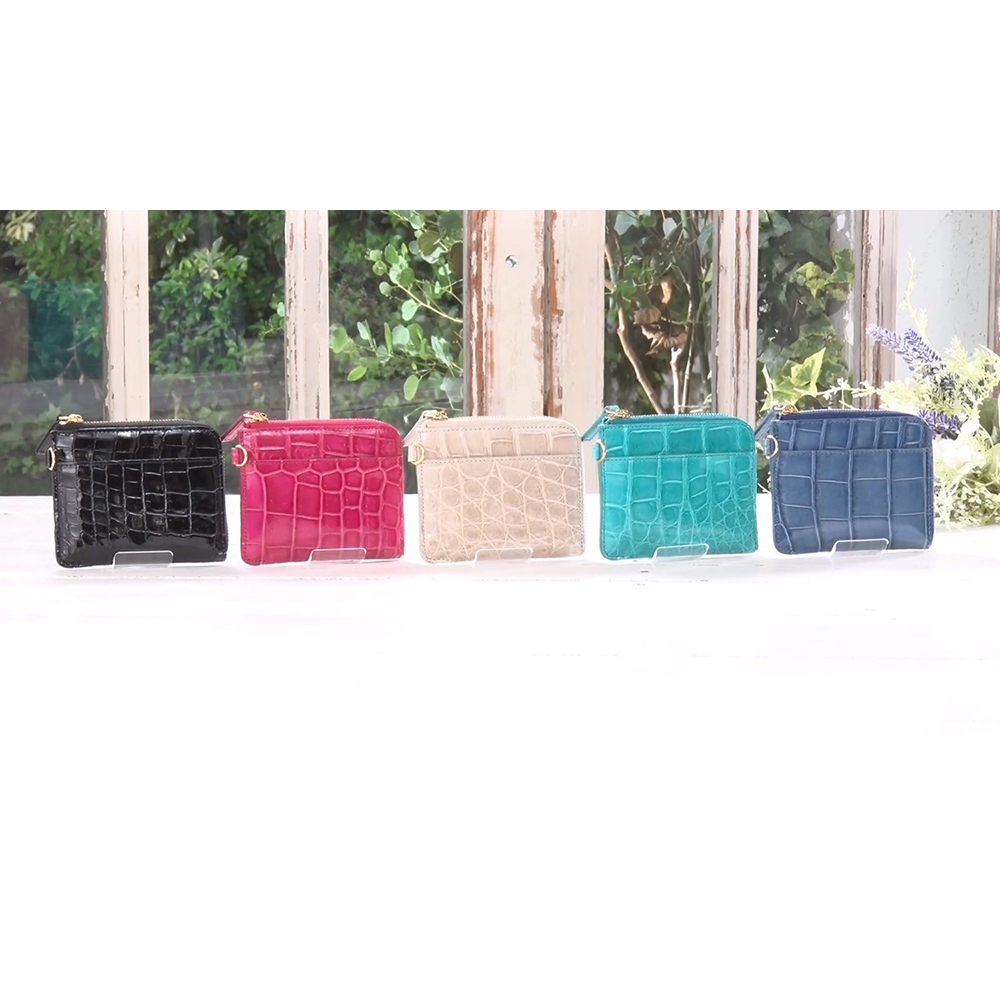 高級皮革クロコダイル革を贅沢に使ったコンパクト財布。キャッシュレス時代の今、このサイズ感がちょうどいい!カラーは5色。どれも高級感にあふれ、持っているとリッチな気分になれそうです。