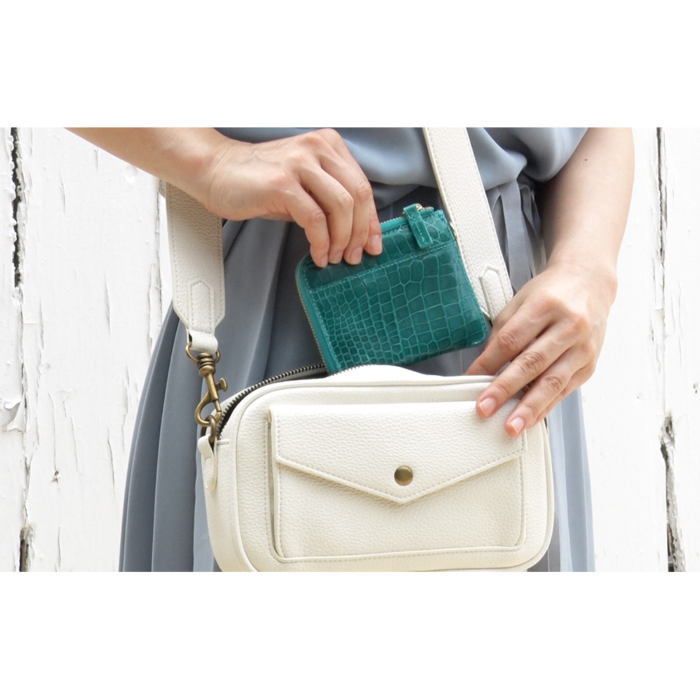 皮革の宝石「クロコダイル革」のコンパクト財布が破格値!今、このサイズ感がちょうどいい!コンパクトサイズがうれしい!高級皮革クロコダイル革の財布キャッシュレス化で、現金を使う機会が減っている今こそ、『ZUMA社クロコ コンパクト財布』がおすすめ!とにかくコンパクトなサイズ感がうれしく、財布としての使い勝手もいいんです。しかも高級感あふれるクロコダイル革を使用してこの値段は本当に破格!実はハンドバッグ用の1枚革の余った部分で使っているためで、価格は安くても品質は上質。「革の宝石」といわれるほど美しい輝きを放ちます。余った革がたまらないとできない企画だけに、今がチャンスです。宝石のように美しく輝くクロコのコンパクト財布が、とにかく安い!【安さの秘密は?】◎何よりうれしいのが価格の安さ!ここまでお安くご紹介できるのにはワケがあります。クロコダイル革は非常に高価で、中でも1枚革で作られるバッグは数十万円することも。実はこのコンパクト財布は、その1枚革で作られる高級バッグと同じ革で作られています。ただし使用したのは大きなバッグを作るときに使わなかった小さな革部分を有効活用。コツコツとためた革を、組み合わせて作ることで今回の破格値が実現した特別企画。革を集めるのに時間がかかるため、頻繁にご紹介するのは難しいんです。【安くても、品質に自信あり!】◎破格値なのにクロコダイルの美しさはそのまま。この見事なツヤ感が、クロコならではのゴージャス感を演出。さらに今回使用したのは、イタリアのエキゾチックレザー専門タンナー『ZUMA社(ズーマ社)』のクロコダイル。イタリアならではの染色の美しさが際立ちます。イタリアンレザー(クロコダイル)を使用して、この価格は破格です!ただしクロコダイルは天然素材のため、四角い「竹斑」と丸い「丸班」のどちらの模様が入るかはわかりません。クロコ独特のその模様は、世界にたった一つ。あなただけのクロコ財布となります。財布としての使い勝手も素晴らしい!コンパクト財布なのに、これは使い勝手もバッチリ!たくさん入ってさっと取り出しやすい。前回サイズより5mm幅を出したことで、さらにカードの出し入れがしやすくなりました!また薄いサイズ感なので、パンツの後ろポケットにも入れやすく、男性にもおすすめです。【便利な仕様】◎L字ファスナー開閉で、ガバッと開いて、中身が一目瞭然。お札も小銭も取り出しやすい。◎コンパクトでも収納力はしっかり。お札は半分に折って両サイドに入れられます。◎中央の小銭入れはファスナーなしでも小銭が散らばりません。出し入れもラク。◎カードは内部に6枚、外側に2枚収納可。外側ポケットにICカードを入れれば、電車に乗るときもこれ1つでOKです。【取り外し可能なストラップ付き!】お財布で、あったら便利なのが持ち手。そこで取り外し可能なストラップをお付けしました。買い物で両手がふさがった時や、カフェでの会計など、このストラップがあれば手首に掛けられて便利!またバッグの持ち手に引っ掛けておけば、バッグの中で財布が迷子になる心配もありません。コンパクト財布なら、いろいろなシーンで活躍!メイン財布としてももちろんサブ財布としても大活躍。実はこのサイズがちょうどいいシーンは意外に多く、一つ持っているとかなり重宝します。【例えばこんなシーンに!】・ウォーキングや犬の散歩の時に。ポケットに入るサイズが嬉しい。・旅行におすすめ。長財布との両方持ちも便利。・スポーツジムに行くときなどに。・山登り、ハイキングなどに。重たい長財布は家に置いて、アウトドアは軽やかに。・パーティなどバッグが小さめで、長財布が入らない時。クロコダイルならどんな席でもエレガントに使えます。