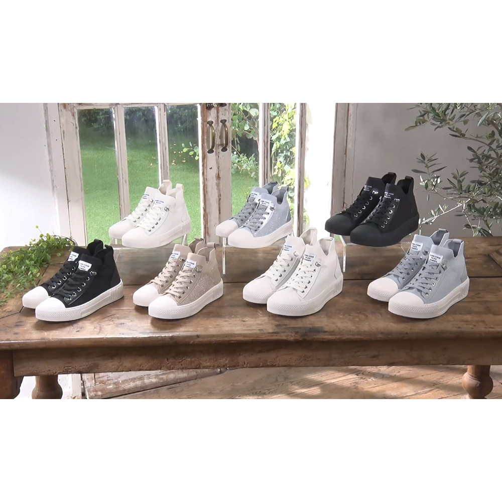 「大人スニーカー」はレディースも展開中。左上下2足(計4)がレディース。右上1・右下2足(計3)がメンズ。
