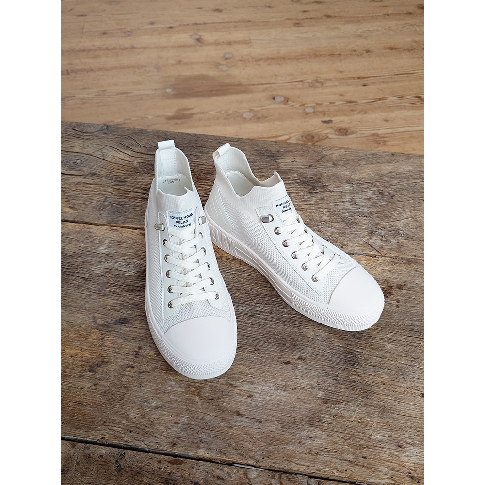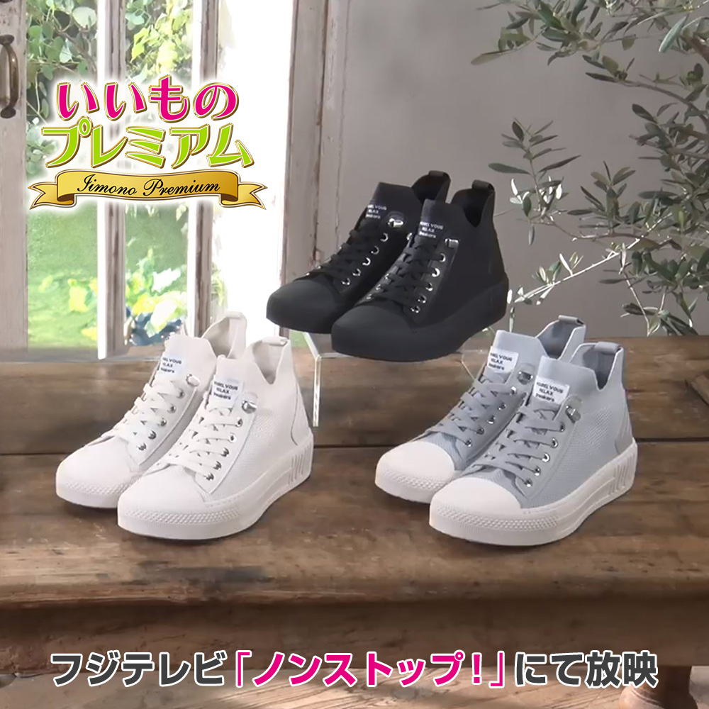 履き心地がよく、脱ぎ履きラクなのに、いつものジャケットにも合わせやすい大人が履ける厚底ハイカットスニーカーの「メンズタイプ」!とにかくラク!とにかくおしゃれ♪ な大人スニーカーラクなのにおしゃれに履ける『ヌーベルヴォーグリラックス 大人スニーカー』のメンズタイプ!スニーカーは普段の街歩きから旅行まで、日々活躍する定番アイテムですが、ジャケットスタイルなど大人の装いには合わせにくいことも。でもこのスニーカーなら大丈夫!履き心地がラクなのに、カジュアルなオフィスにもおしゃれにマッチ!厚底で脚長効果もあり、脱ぎ履きもラクです!◎番組MCをはじめスタッフからも「メンズはないの?」「ぜひ作ってほしい」と要望の高かったメンズタイプ。今買えるのはディノスだけです。『ヌーベルヴォーグリラックス 大人スニーカー』の特筆ポイント〈1〉履き心地がとにかくラク!〈2〉大人のお洒落心も満たしてくれるデザインとにかくラク!〈足の形にフィットするやわらかなニット素材!〉スニーカーでもアッパーが硬いものがありますが、これは当たりがソフトなニット素材。さまざまな足の形に合わせてフィットし、まるで靴が足に合わせてくれるような履き心地。さらにワイズは3E相当で、幅広・甲高・外反母趾の方にもおすすめです。〈履き口やわらかで、脱ぎ履きもラク!〉ハイカットスニーカーなのに、脱ぎ履きラクなのもうれしいポイント。はき口部分もニットでやわらかく、ビョーンと伸びるからスッと履けてサッと脱げて、靴ズレもしにくい。ヒモ部分は飾り仕様の「なんちゃってヒモ」だから結ぶ必要も、ほどける心配もありません。しかもあえて伸びない靴ヒモにすることで安定感のある歩行をキープできます。〈人気の厚底、ハイカットタイプなのに歩きやすい!〉厚底でハイカットでも歩くのがラクで疲れにくい!その秘密は…◎屈曲のよいソール…靴底をハニカム構造にすることで、やわらかく、よく曲がり、足の動きに靴底がフィットし歩きやすい。◎クッション性…ソールにクッション性があり、着地の衝撃を吸収して疲れにくい。◎Vカット…くるぶし部分にVカットを入れることで、擦れにくく痛くなりにくい。◎つま先上がり…ソールが先端に向かって緩やかに反り上がっている形状だから蹴り出しやすく、足運びがスムーズ。弾む感じでグングン歩けます。◎軽い…厚底の高ゲタ仕様なのに重量は約400g以下(26.5cm/片足)。軽いからラク!とにかくおしゃれ!〈いつもの服にも似合うおしゃれなデザイン〉スニーカーはデニムなどのカジュアルな服に合わせがちですが、これならきちんと感のあるジャケットスタイルにもしっくり馴染むデザイン!いつもの装いにも合わせやすく、コーディネートの幅が広がります。〈厚底で脚長・美脚効果も〉ヒール高は約4.5cm。前後で高低差がないフラットな高ゲタ仕様だから、歩きやすいのに脚長に見えます。〈カラーは3色〉オールブラック、オフホワイト、ブルーグレーの3色をご用意しました。丸洗いOK!本体は丸洗い可能!インソールが取り外せて 汚れや臭いが気になったら手軽に洗えます。しかもニット素材だから 乾くのも速い!