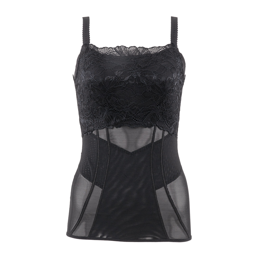 (ア)レースブラック お腹部分はパワーネットを二重にしてしっかりカバー!しかも二重部分が裾まであるから下腹までスッキリ!