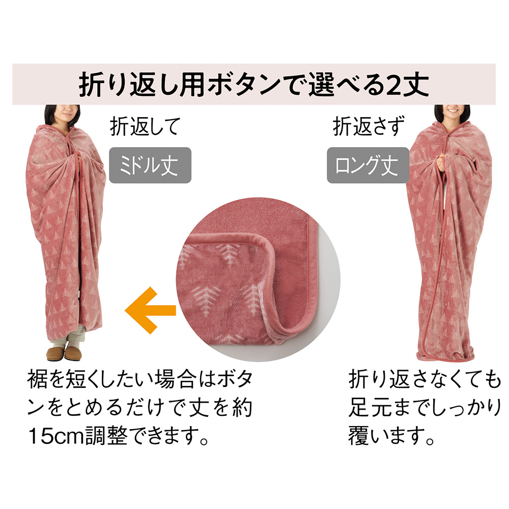 ガウンのように着たり、ブランケットのように掛けたり。電気カーペットにもおすすめ◎マルチに使える電気ブランケット!今買えるのはディノスだけ!おうちで一人でいる時はエアコンを使わずに電気ブランケットを着て省エネ。スナップボタンを止めれば足まですっぽり、密着度が上がってさらに暖かく過ごせます。その人気に大納得の1枚です。敷き毛布代わりにして、寝転んでもあったかなんと敷いて電気カーペットとしても使えちゃうんです。大判サイズだからいつでもどこでもシーンに合わせてマルチに使えるのでコスパも抜群です。落ち着いた北欧柄がオシャレ。思わず頬ずりしたくなる質感ですお好みに合わせて選べる全3カラー展開。北欧調の柄でおしゃれさが人気。インテリアにマッチするので、リビングにおいてもおしゃれ。滑らかな質感と心地よい肌ざわりを、ぜひ実感してください。少ない消費電力で快適節電。一人でいる時のマストアイテムです強モードでも電気代は1時間当たりわずか1.3円(中モード0.7円、弱モード0.1円)エアコンだと1人の時はもったいないと感じていた方に大好評です。※ダニ対策モード付きの清潔仕様です。※屋内じん性ダニ類※電気代は24年7月時点の目安単価:1kWhあたり31円(税込み)にて計算しています。汚れても安心。おうちの洗濯機で簡単に洗えますうっかり汚してしまった、ちょっと匂いが気になる。そんな時でも大丈夫。コードを外して洗濯ネットに入れれば、なめらかでやさしい肌ざわりはそのままに、おうちの洗濯機で手軽に洗えます。