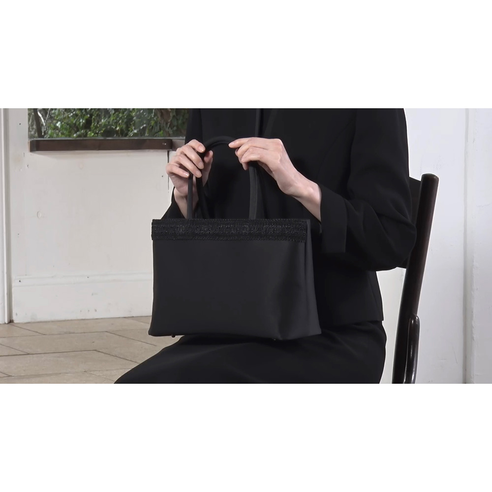 【2月17日(火)から2月25日(水)までキャンペーン価格9980円(税込/送料別)】関連商品は下記の商品名をコピーのうえ検索してください。東京ソワール 洗えるブラックフォーマル アンサンブル岩佐 コードリボン付きフォーマルバッグ(ショルダー付き)クリスタルパール ネックレス・イヤリング・ピアスセット 【ブラックフォーマル】※お申込み状況によりキャンペーン終了前でも、販売を終了させていただく場合がございます。あらかじめご了承ください。フォーマルバッグの老舗「岩佐」と共同企画コードリボンがアクセントのフォーマルバッグフォーマルウェアと一緒に揃えておきたいフォーマルバッグ。岩佐の「コードリボン付きフォーマルバッグ」がオススメです。表面の上部に立体的なコードリボンを配したデザインのフォーマルバッグ。シンプルかつエレガントな印象です。トートデザインなので、荷物の出し入れがスムーズに行えます。袱紗や長財布、化粧ポーチ、折り畳み傘、500mLのペットボトル、替えのストッキングなどもスッポリ収まる大容量。このデザインは、喪の席や法事だけに限らず、入学式や卒業式などハレの日のセレモニーなどさまざまなシーンでお使いいただけます。また軽量芯を用いて作っており、バッグ本体は約340gととても軽いおつくりです。岩佐のコードリボンフォーマルバッグはどこがスゴイの?◎コードリボンを配したエレガントなデザイン◎収納力たっぷりなのに軽い◎本体の生地は、はっ水加工済み【岩佐とは?】1928年創業。長年培ってきた匠の技で、裁断から縫製、完成まで丁寧な手作業で仕上げるフォーマルバッグの老舗。作りはもちろん生地や裏地、中芯、金具まで純日本製にこだわっています。