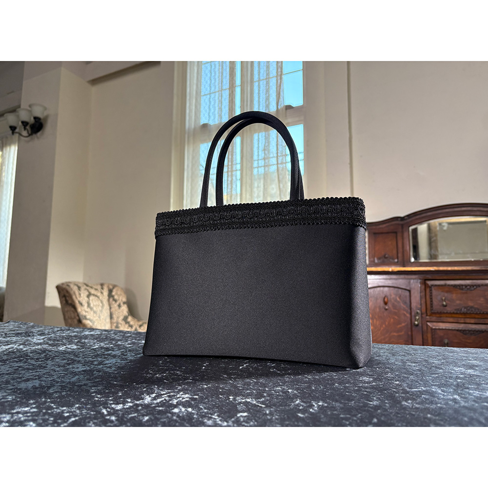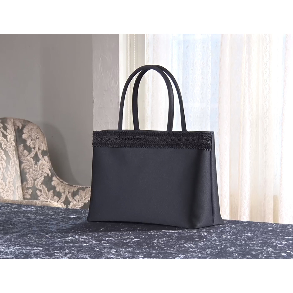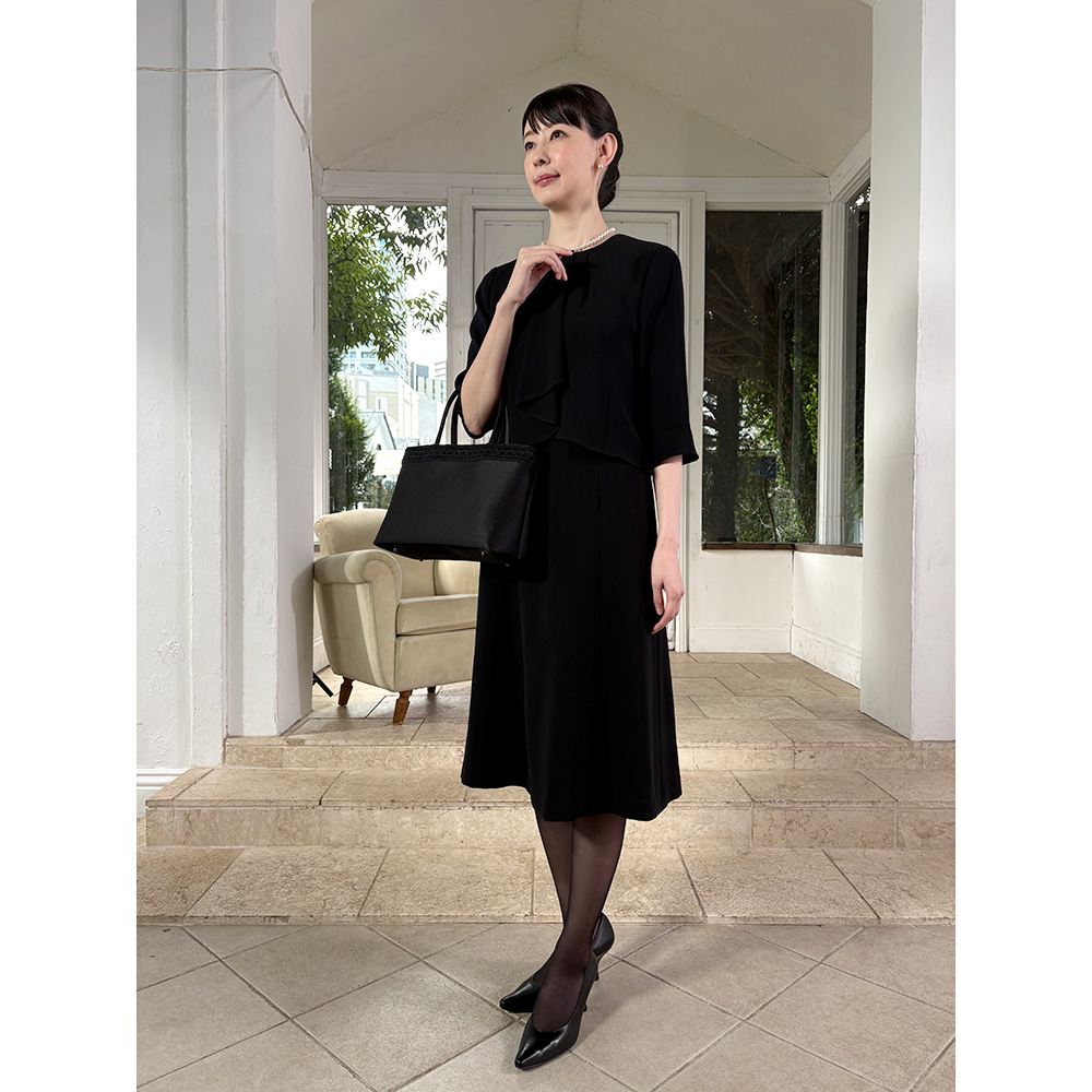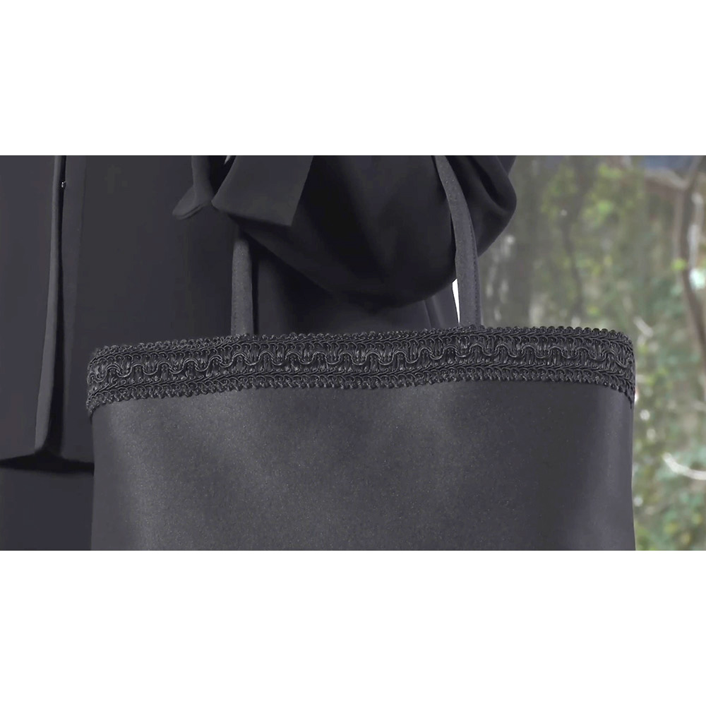 【2月17日(火)から2月25日(水)までキャンペーン価格11980円(税込/送料別)】関連商品は下記の商品名をコピーのうえ検索してください。東京ソワール 洗えるブラックフォーマル アンサンブル岩佐 コードリボン付きフォーマルバッグクリスタルパール ネックレス・イヤリング・ピアスセット 【ブラックフォーマル】※お申込み状況によりキャンペーン終了前でも、販売を終了させていただく場合がございます。あらかじめご了承ください。フォーマルバッグの老舗「岩佐」と共同企画コードリボンがアクセントのフォーマルバッグショルダーストラップ付きでななめ掛けにも!フォーマルウェアと一緒に揃えておきたいフォーマルバッグ。岩佐の「コードリボン付きフォーマルバッグ」がオススメです。表面の上部に立体的なコードリボンを配したデザインのフォーマルバッグ。シンプルかつエレガントな印象です。トートデザインなので、荷物の出し入れがスムーズに行えます。袱紗や長財布、化粧ポーチ、折り畳み傘、500mlのペットボトル、替えのストッキングなどもスッポリ収まる大容量。このデザインは、喪の席や法事だけに限らず、入学式や卒業式などハレの日のセレモニーなどさまざまなシーンでお使いいただけます。また軽量芯を用いて作っており、バッグ本体はとても軽いおつくりです。こちらにはショルダーストラップが付属しており、ななめ掛けでも使えて大変便利です。岩佐のコードリボンフォーマルバッグ(ショルダー付き)はどこがスゴイの?◎コードリボンを配したエレガントなデザイン◎収納力たっぷりなのに軽い◎本体の生地は、はっ水加工済み◎ショルダーストラップ付きで2WAY仕様【岩佐とは?】1928年創業。長年培ってきた匠の技で、裁断から縫製、完成まで丁寧な手作業で仕上げるフォーマルバッグの老舗。作りはもちろん生地や裏地、中芯、金具まで純日本製にこだわっています。