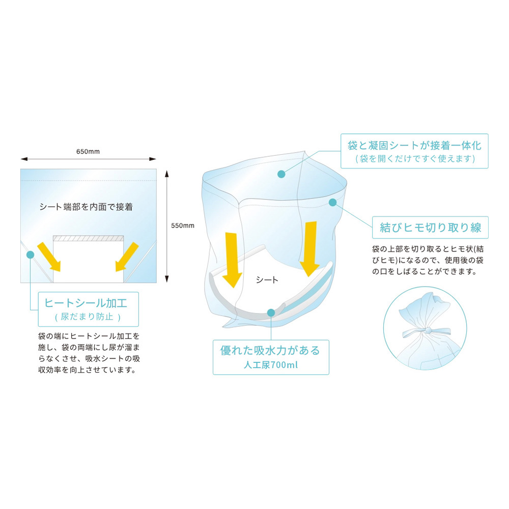 袋に内蔵された吸水シートがしっかり水分を吸水します。