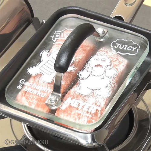 プレスにはガチャピン・ムックの可愛いイラストが!料理を一緒にしている気分に♪