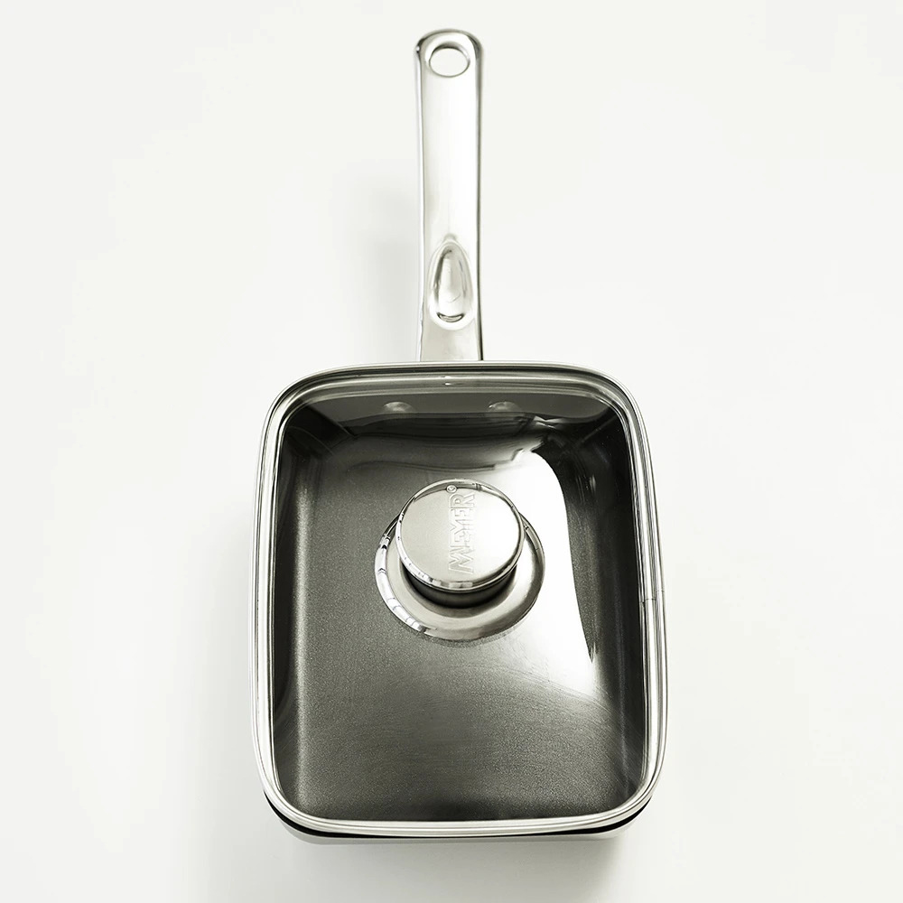 【4月1日(水)から4月6日(月)までキャンペーン価格7980円(税込/送料別)】関連商品は下記の商品名をコピーのうえ検索してください。≪マイヤーロゴVer≫ MEYER/マイヤー ふた付きエッグパン+プレス特別セット※お申込み状況によりキャンペーン終了前でも、販売を終了させていただく場合がございます。あらかじめご了承ください。卵焼きはもちろん、プレスで焼き物、ガラス蓋を使って煮物などにも活躍!機能性にとことんこだわった使いやすいフライパンセット♪dinos55周年×ガチャピン・ムックの限定モデル蓋付きエッグパンにお肉やお魚など食材の上にのせて焼く専用プレスをセット。専用プレスはムラなく香ばしい焼き目がつき美味しく仕上がるアイテム!ガチャピン・ムックのオリジナルデザインが施された限定モデルが買えるのはディノスだけ!アメリカ高級キッチンブランド’MEYER’の蓋付きエッグパンエッグパンと聞くと玉子焼き器という印象ですが、侮ることなかれ!玉子焼きはもちろん、炒め物、少量の煮物やお魚料理、炊飯などにも使える万能な小型の調理器具なんです。さらにMEYERのエッグパンはオールステンレスなので蓄熱性も良く、熱ムラができにくいのでどこで焼いてもきれいな焼き目がついて美しく仕上がります。 玉子焼き器のお悩みを解消!焦げついて失敗したり、油を何度も引いて油っこい仕上がりになったり意外と難しい玉子焼き作り。。。でも今回のエッグパンは最初にサッと薄く油を引けばOK!しかも、この油はくっつきにくいためではなく「味と香りのため」。アメリカのウィットフォード社最高ランクのフッ素樹脂加工が施されているんです!お店みたいにフワフワな玉子焼きが作れちゃう秘密が!鍋底にはステンレスとアルミを挟んだ、三層構造を採用。なんと厚みは7ミリ!熱伝導が高いアルミと、蓄熱性の高いステンレスで全体にサッと火が入るから、焼きムラが少ない!弱火で、短時間でふっくら仕上げられるんです!マルチに使えるエッグパン・うどんや麺類がちょうど一玉入るサイズ!サッと茹でるのに便利・レトルトの温め直しにも無駄のないサイズ感・一人前分の料理やおかず作りに最適!お弁当作りにももってこいです!・取っ手までオールステンレスだからオーブン調理もOK!グラタンも炒めてそのままオーブンに。プレスを使えば料理がもっと楽しくなるプレスは元々アメリカで、カリカリのベーコンを焼くときなどに使われている調理法。日本ではあまり馴染みがないですが、ギュッと押し付けると、食材がムラなく焼けてキレイな焼き目が!今回ご用意したガチャピン・ムックモデルはディノスでしか買えない限定モデル!皮パリチキンが専用プレスを使うと、均等に熱が入るから、短時間で中までしっかり火が通る!しかも、蒸気を程よく逃してくれるから、パリッとした焼き目が。だから、外はカリッと香ばしく、中はふっくらジューシーに仕上がるんです♪エッグパンには珍しいガラス蓋付き!実は、「ガラス蓋」がついてくるのも便利!蓋があると蒸し料理が作れちゃう!例えば「目玉焼き」や「餃子」を作るときにいい!笠原将弘さん監修のレシピ25品付き料理のレパートリーが一気に増えて、毎日のおうちごはんが楽しくなります!ガチャピン・ムックの限定モデルの他に、マイヤーロゴモデルもご用意!