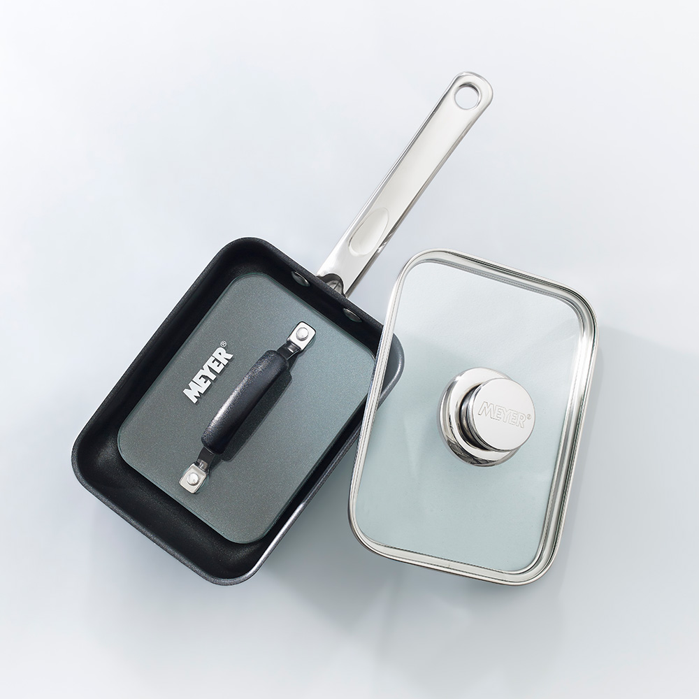 【4月1日(水)から4月6日(月)までキャンペーン価格7980円(税込/送料別)】関連商品は下記の商品名をコピーのうえ検索してください。≪ガチャピン・ムックVer≫ MEYER/マイヤー ふた付きエッグパン+プレス特別セット※お申込み状況によりキャンペーン終了前でも、販売を終了させていただく場合がございます。あらかじめご了承ください。卵焼きはもちろん、プレスで焼き物、ガラス蓋を使って煮物などにも活躍!機能性にとことんこだわった使いやすいフライパンセット♪アメリカ高級キッチンブランド’MEYER’の蓋付きエッグパンエッグパンと聞くと玉子焼き器という印象ですが、侮ることなかれ!玉子焼きはもちろん、炒め物、少量の煮物やお魚料理、炊飯などにも使える万能な小型の調理器具なんです。さらにMEYERのエッグパンはオールステンレスなので蓄熱性も良く、熱ムラができにくいのでどこで焼いてもきれいな焼き目がついて美しく仕上がります。 玉子焼き器のお悩みを解消!焦げついて失敗したり、油を何度も引いて油っこい仕上がりになったり意外と難しい玉子焼き作り。。。でも今回のエッグパンは最初にサッと薄く油を引けばOK!しかも、この油はくっつきにくいためではなく「味と香りのため」。アメリカのウィットフォード社最高ランクのフッ素樹脂加工が施されているんです!お店みたいにフワフワな玉子焼きが作れちゃう秘密が!鍋底にはステンレスとアルミを挟んだ、三層構造を採用。なんと厚みは7ミリ!熱伝導が高いアルミと、蓄熱性の高いステンレスで全体にサッと火が入るから、焼きムラが少ない!弱火で、短時間でふっくら仕上げられるんです!マルチに使えるエッグパン・うどんや麺類がちょうど一玉入るサイズ!サッと茹でるのに便利・レトルトの温め直しにも無駄のないサイズ感・一人前分の料理やおかず作りに最適!お弁当作りにももってこいです!・取っ手までオールステンレスだからオーブン調理もOK!グラタンも炒めてそのままオーブンに。プレスを使えば料理がもっと楽しくなるプレスは元々アメリカで、カリカリのベーコンを焼くときなどに使われている調理法。日本ではあまり馴染みがないですが、ギュッと押し付けると、食材がムラなく焼けてキレイな焼き目が!皮パリチキンが専用プレスを使うと、均等に熱が入るから、短時間で中までしっかり火が通る!しかも、蒸気を程よく逃してくれるから、パリッとした焼き目が。だから、外はカリッと香ばしく、中はふっくらジューシーに仕上がるんです♪エッグパンには珍しいガラス蓋付き!実は、「ガラス蓋」がついてくるのも便利!蓋があると蒸し料理が作れちゃう!例えば「目玉焼き」や「餃子」を作るときにいい!笠原将弘さん監修のレシピ25品付き料理のレパートリーが一気に増えて、毎日のおうちごはんが楽しくなります!