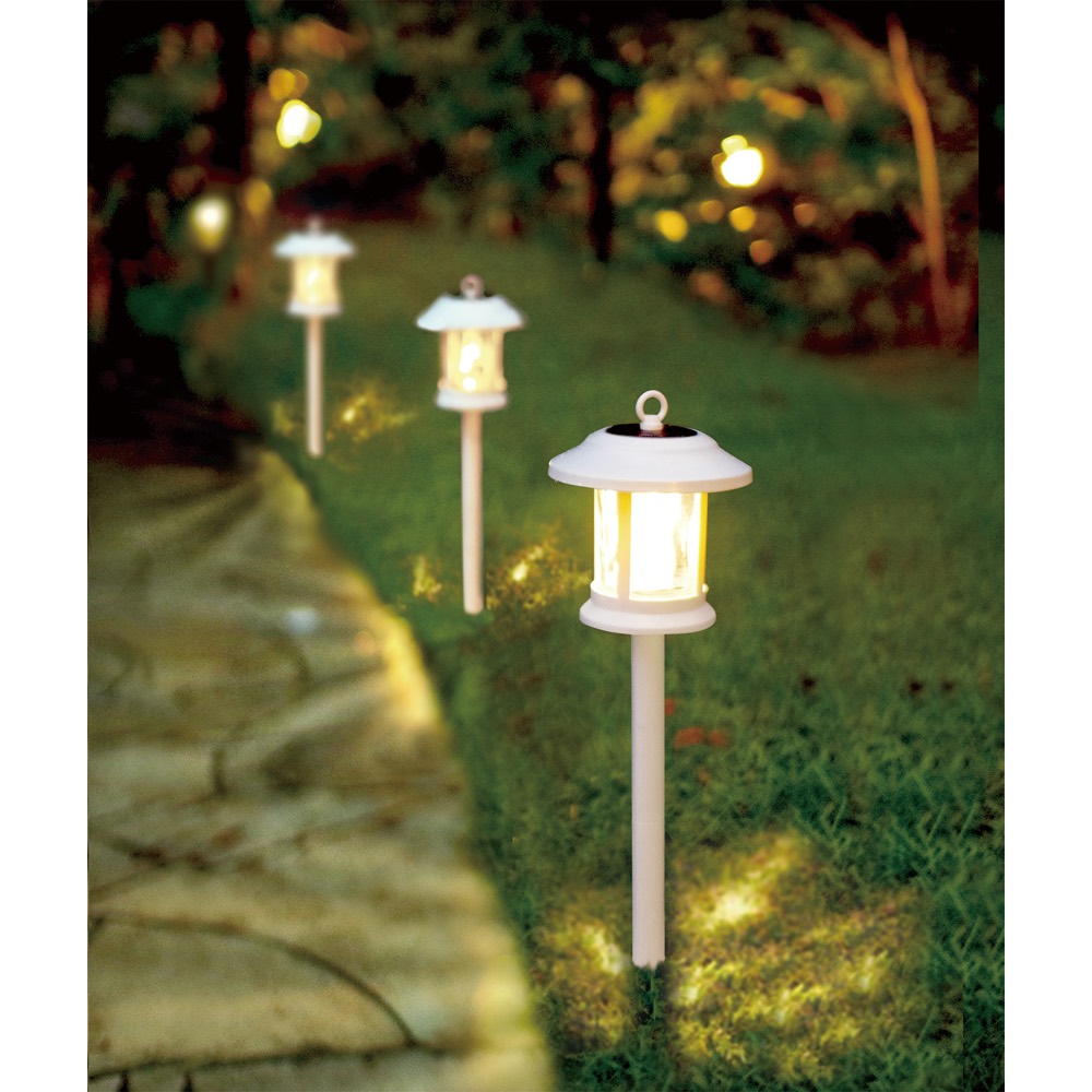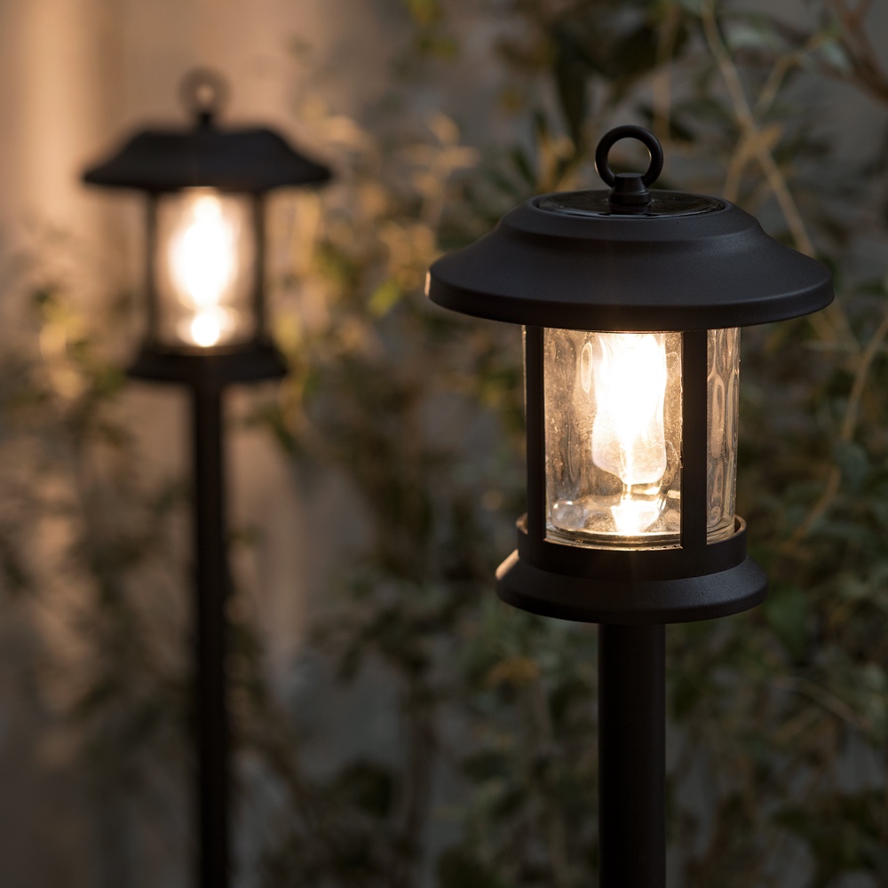 ライト単体で「置き」「吊し」、付属パーツで「挿し」の3WAY。雰囲気のあるおしゃれなデザインで植栽になじみます。
