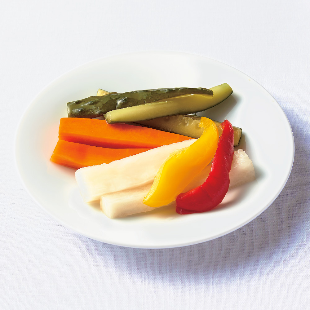 野菜のピクルス きゅうり、大根、人参、パプリカの歯ごたえのあるピクルス。島根県製造ワインビネガーですっきり。