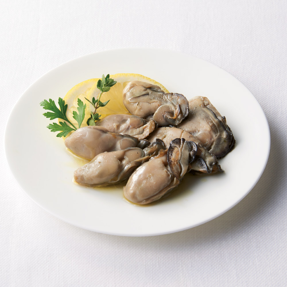 かきオリーブオイル漬け 一口サイズのかきをハーブとコンソメで煮込み、エクストラバージンオイルで香り豊かに。