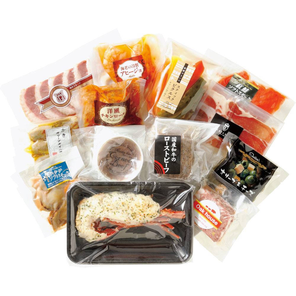 お届けは12月29日もしくは12月30日になります。日付指定は承れません。商品ページに記載の内容にかかわらずANAmall店では日時指定を承ることができません。誠に恐れ入りますが何卒ご了承ください。クレジットカードでのお支払いの場合は、商品のお届け時期まで有効期限・ご利用限度額が有効であるクレジットカードをご利用ください。出荷時にカードの有効性が確認できない場合はご注文がキャンセルとなる可能性、もしくはANAモール上での決済が完了せずマイルが貯まらない可能性がございます。あらかじめご了承ください。選りすぐりの素材を巧みな技で仕上げたディノスオリジナルの洋風おせち。※無くなり次第終了となりますのでお早めにご注文ください。※お届け日:12月29日、30日の日時指定を承ります。選りすぐりの素材を巧みな技で仕上げたディノスオリジナルの洋風おせち。イセエビのテルミドールがついた厳選13品セットをご用意しました。使いやすい個別パックでお届けします。※写真は盛り付け例です。(全量ではございません)※商品にはお重は付きません。■洋風おせち、13品目、3〜4人前■お品書きコンビーフ80g、国産和牛ローストビーフ100g ソース10g付、紅鮭スモークサーモン50g、ほたてのスモーク60g(5個)、パテ・ド・カンパーニュ100g、スペイン産セラーノ 生ハム20g、鴨ローススモーク70g、かきオリーブオイル漬け60g、洋風チキンロール110g、野菜のピクルス100g、オリーブ&チーズ80g、海老の冷製アヒージョ75g、イセエビテルミドール1食入