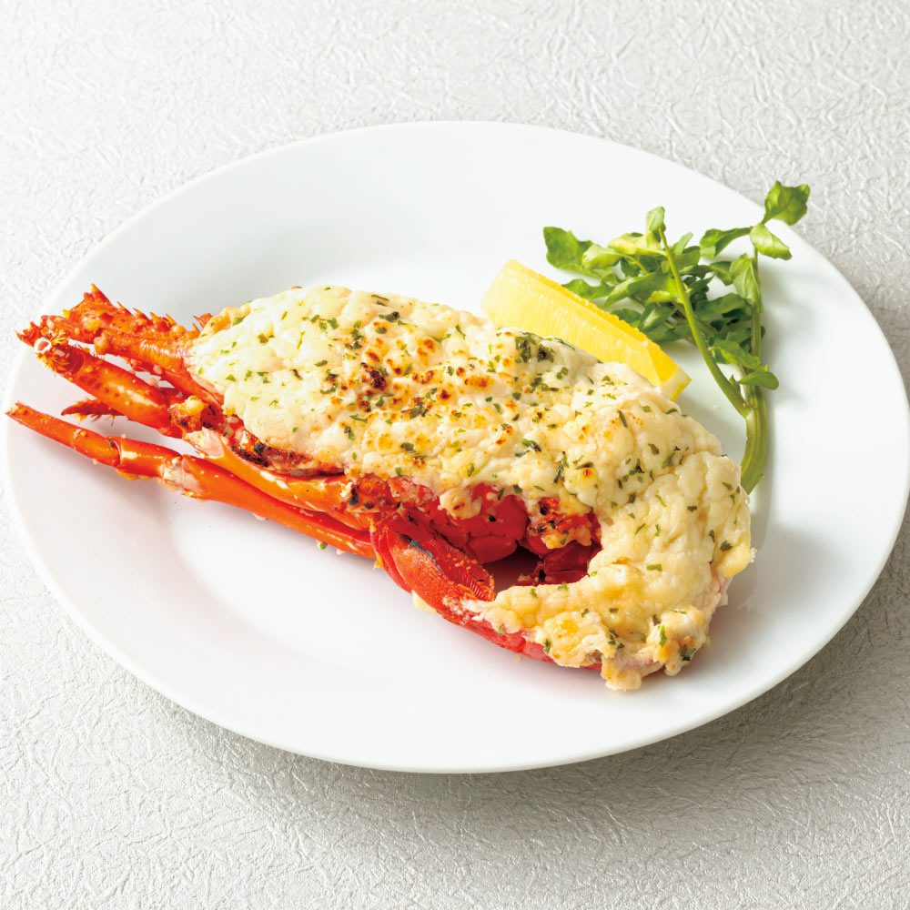 イセエビのテルミドール こだわりのベシャメルソースがイセエビの豊かな風味と食感を引き立てます。