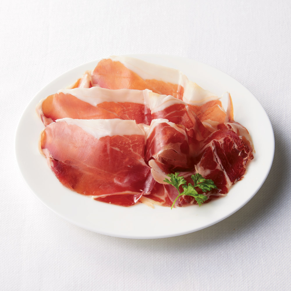スペイン産セラーノ生ハム 山の白豚セラーノを熟成させた生ハム。さっぱりと食べやすい軽めの味わい。