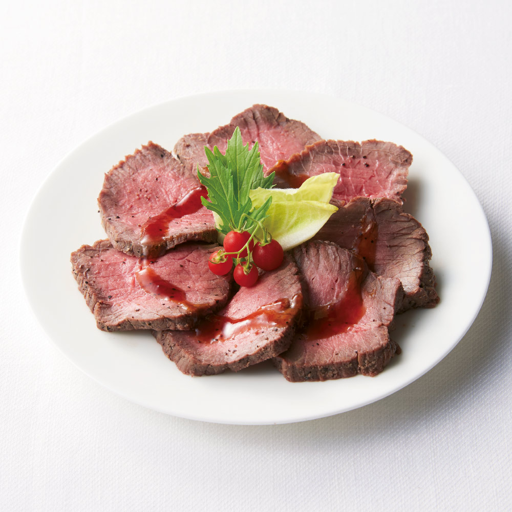 国産和牛ローストビーフ 和牛もも肉を絶妙な焼き加減で、しっとりと芳醇な味わいに仕上げました。