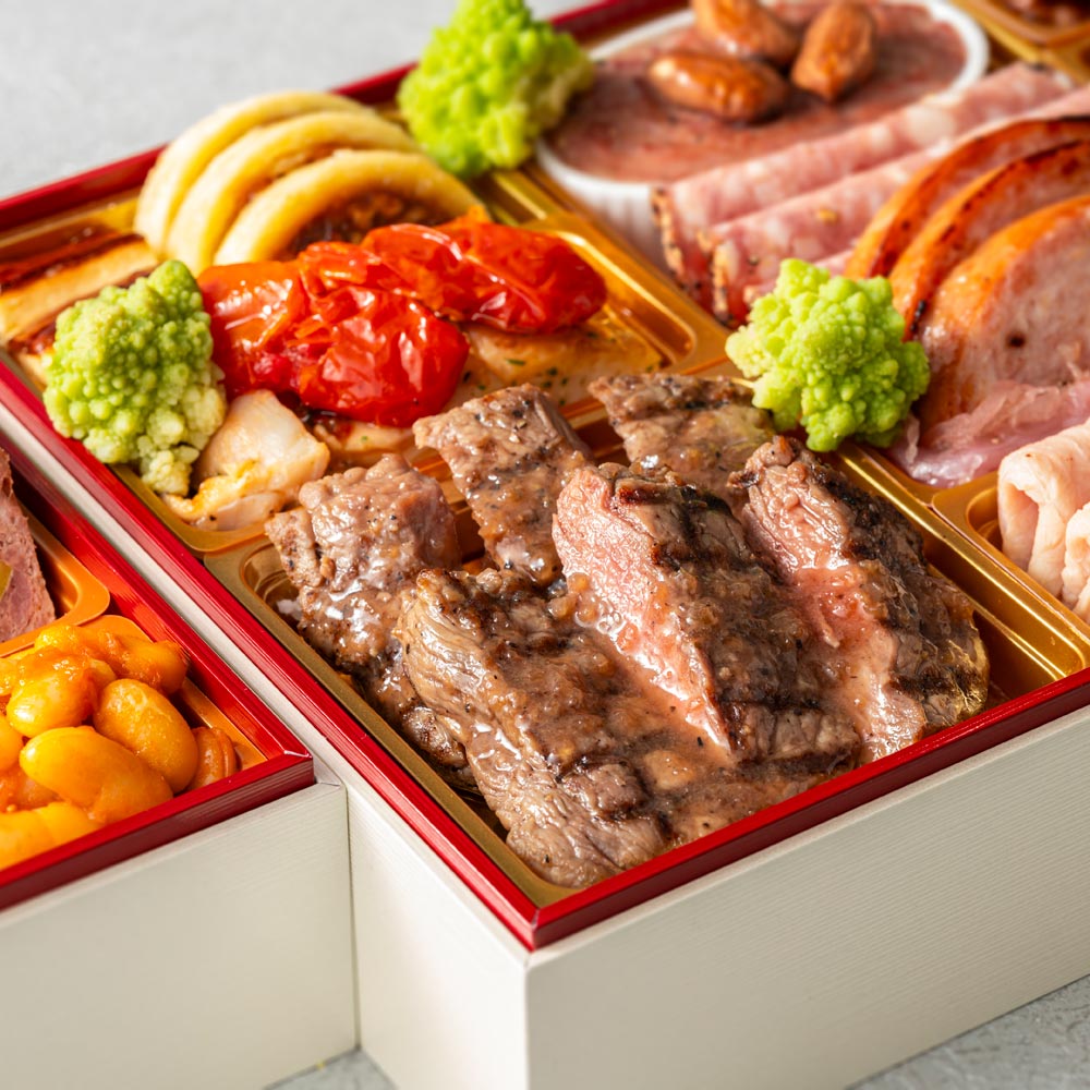 お届けは12月29日もしくは12月30日になります。日付指定は承れません。商品ページに記載の内容にかかわらずANAmall店では日時指定を承ることができません。誠に恐れ入りますが何卒ご了承ください。クレジットカードでのお支払いの場合は、商品のお届け時期まで有効期限・ご利用限度額が有効であるクレジットカードをご利用ください。出荷時にカードの有効性が確認できない場合はご注文がキャンセルとなる可能性、もしくはANAモール上での決済が完了せずマイルが貯まらない可能性がございます。あらかじめご了承ください。昨年おせち部門売上3位!(※)銀座のイタリアンエッセンスを取り入れた鉄板料理の「ポルトファーロ」が贈るこだわり洋風オードブル。(※)2024年度おせち売上金額順位※無くなり次第終了となりますのでお早めにご注文ください。※お届け日:12月29日、30日の日時指定を承ります。鮮やかな彩りが食卓をにぎわせ、ワイン好きの方にも人気の洋風オードブルです。一の重には小海老の白ワイン蒸し、タコのラビゴットソース、ローストビーフ赤ワイン漬など。二の重はサーロインステーキトリュフソース、白イチジクのテリーヌ、仔牛のパイ包み焼などお肉中心のメニューです。■洋風おせち、2段47品目、約3人前■お重のサイズ:約19.6cm×29cm×5cm×2段■お品書き【一の重】フルーツフロマージュのテリーヌ、アンズのコンポート、タコのラビゴットソース、ダイコンとサーモンのマリネ、生ハム、ハーブクリームチーズ、合鴨スモーク、レンズ豆の煮込み、小海老の白ワイン蒸し、オレンジコンフィ、人参のマリネ、ボイル平さやインゲン、ベーコンとほうれん草のフリッタータ、ボローニャハムのゼリー寄せ、ヤングコーンのピクルス、人参のピクルス、パプリカのピクルス、ブラックオリーブ、カブのピクルス、ローストビーフ赤ワイン漬、紫キャベツとクランベリーのマリネ、スモークサーモンと玉葱のマリネディル風味、豚肉と鶏肝のパテ、ラタトゥイユ、グリーンオリーブのハーブオイル漬、モッツアレラのハーブオイル漬、ココナッツ餡の白きんとん、渋皮栗甘露煮、鶏肉のハニーマスタード、白いんげん豆のトマト煮【二の重】ブリュレムース、エンガーディナー、ロマネスコカリフラワーのブイヨン煮、コンビーフ ローストアーモンド添え、ミートボールデミグラスソース、プラムの赤ワイン煮、鶏肉のコンフィガーリックオイル、セミドライトマト、パストラミ、牛肉とパプリカのマリネ、サーロインステーキトリュフ入りソース、プロッシェンソーセージのステーキ、キャベツと赤玉葱のザワークラウト、仔牛のパイ包み焼、豚肉のロースト、鶏肉とケーパーのゼリー寄せ、白イチジクのテリーヌ