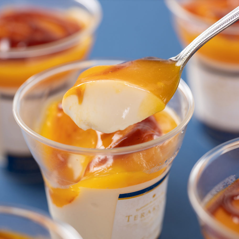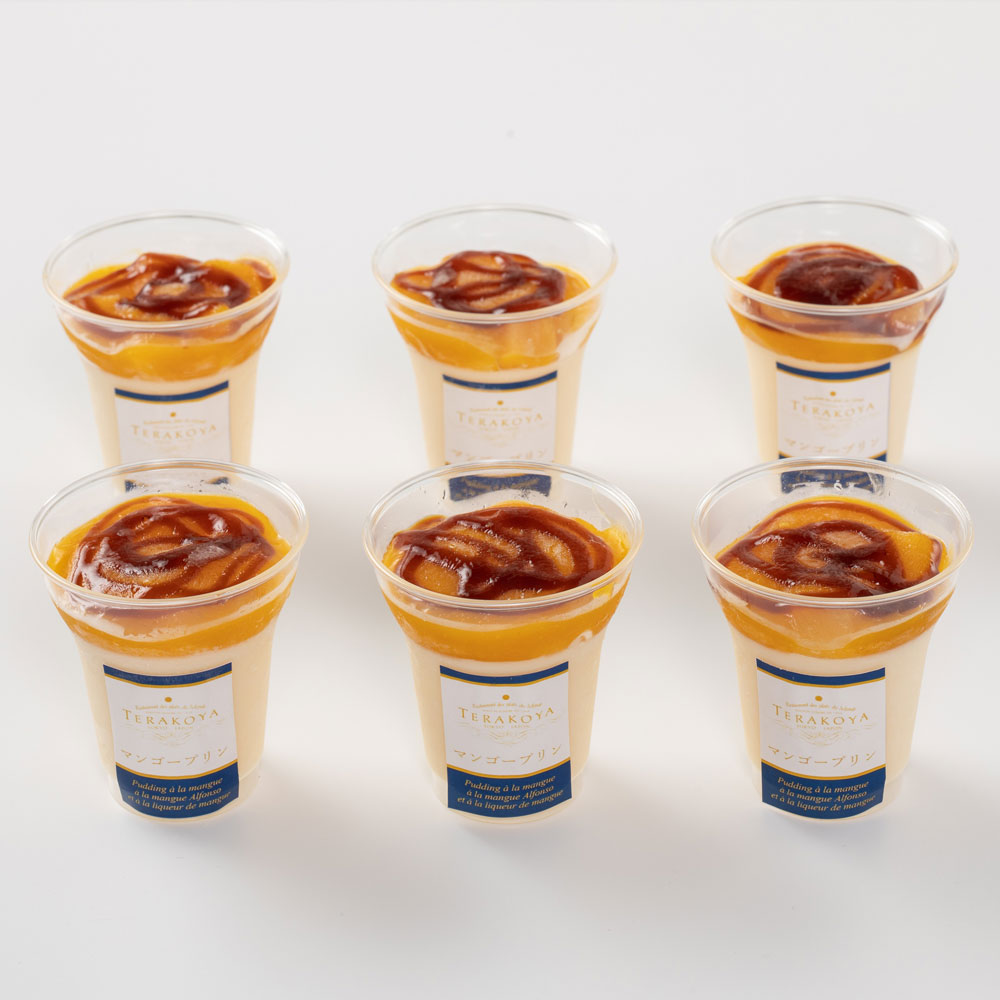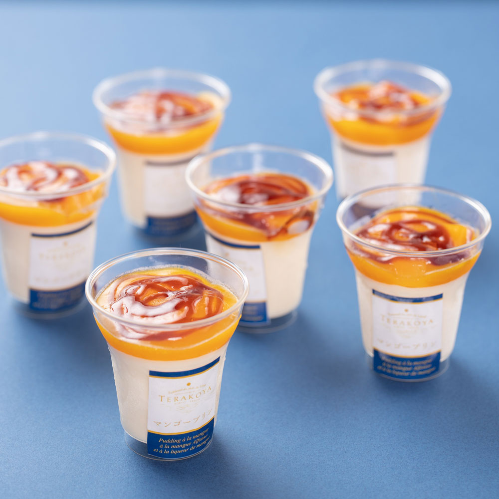 北海道産牛乳を使ったプリンにマンゴーソースをトッピングTERAKOYA監修の濃厚マンゴープリン。北海道産牛乳を使用したなめらかで程よい甘さのプリン、アルフォンソマンゴーにマンゴーリキュール、カラメルを加えたソース、マンゴーダイスのハーモニーをお楽しみください。