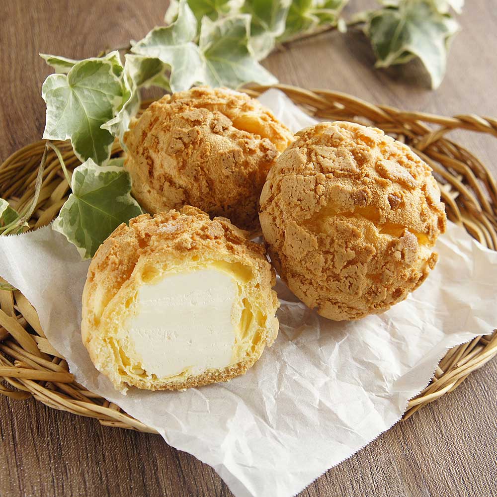 まるでメロンパン!ビスケット生地をのせたシュー皮と富良野メロン果汁を使用した特製メロンクリームを詰め込んであります。香ばしいメロンパンのような見た目と食感のクッキー生地のシュー皮に、富良野メロン果汁を使用した特製メロンクリームをたっぷり詰め込みました。【ベイクド・アルル】北海道江別市にある北海道の素材(純生クリーム、小麦粉、バター、卵など)を使用したスイーツを届ける洋菓子店。創業当初から変わらず、手作業の工程を大切に職人が作っています。