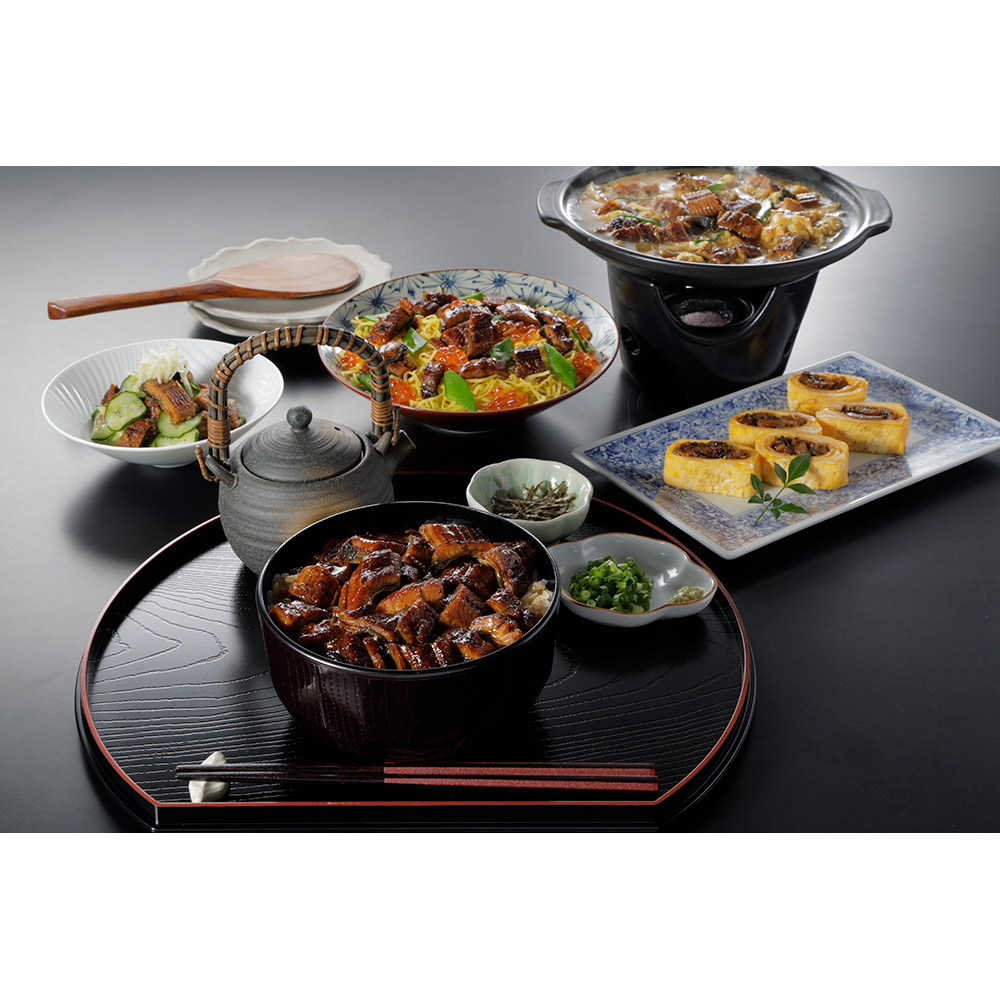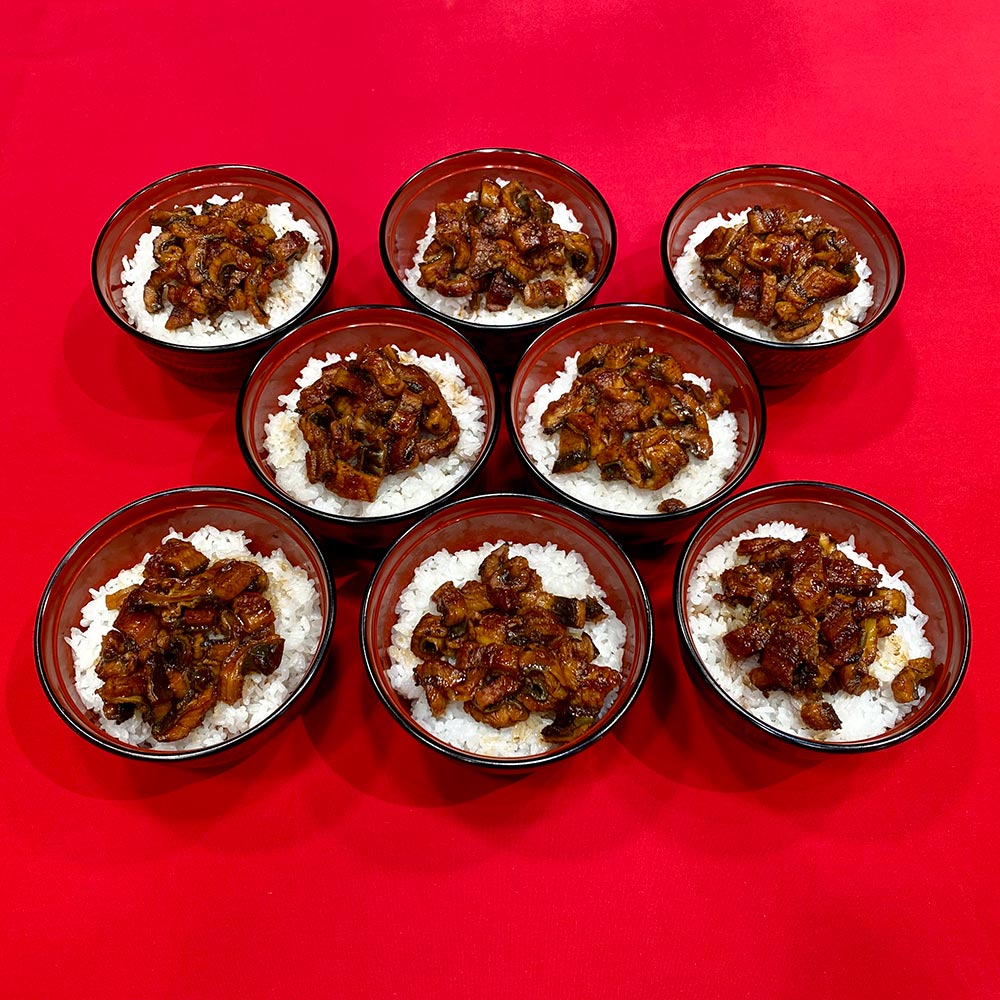 【盛り付け例】贅沢に8個分の丼がつくれます。(1つの丼に50gのうなぎを盛り付けています)