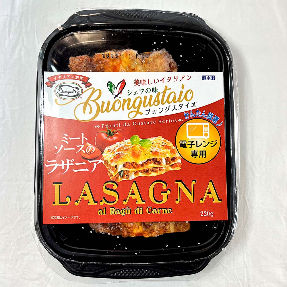 イタリア食材輸入商社がレシピから素材にこだわり、一つ一つ丁寧に調理した冷凍ラザニアです!濃厚なミートソースとチーズのコクに、お肉もたっぷり入ったラザニアです。電子レンジで温めるだけで、本格ラザニアがお楽しみいただけます。ボリューム感もあり、ご家庭の食卓を鮮やかに彩ります!【ブォングスタイオとは】イタリア食材輸入商社が手掛ける自社ブランドです。「Buongustaio(ブォングスタイオ)」とはイタリア語で【美食家】という意味です。自社セントラルキッチンで丁寧に調理した、冷凍商品をご提供いたします。