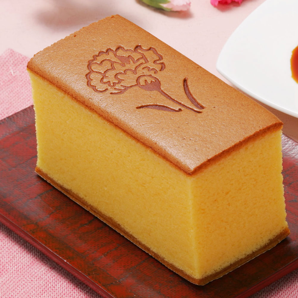 カーネーションの焼印と母の日仕様の限定のパッケージでお届け!烏骨鶏の卵を使用した贅沢なカステラです※お申込締切日は4月23日となります。烏骨鶏の卵を使用した贅沢なかすていら。卵の味わいを活かす素材と独自の配合で、甘味を抑え、しっとりとしたきめ細かい仕上がり。生地のきめ細かさと口当たりの良さが特長で、ついつい手が伸びてしまう美味しさです。職人が1本1本、焼き具合を細かく調整しながら丁寧に作っています。こだわりの烏骨鶏かすていらを母の日限定でカーネーションの焼印を施し、母の日仕様のパッケージに入れました♪※1本当たりは目安として約200gです